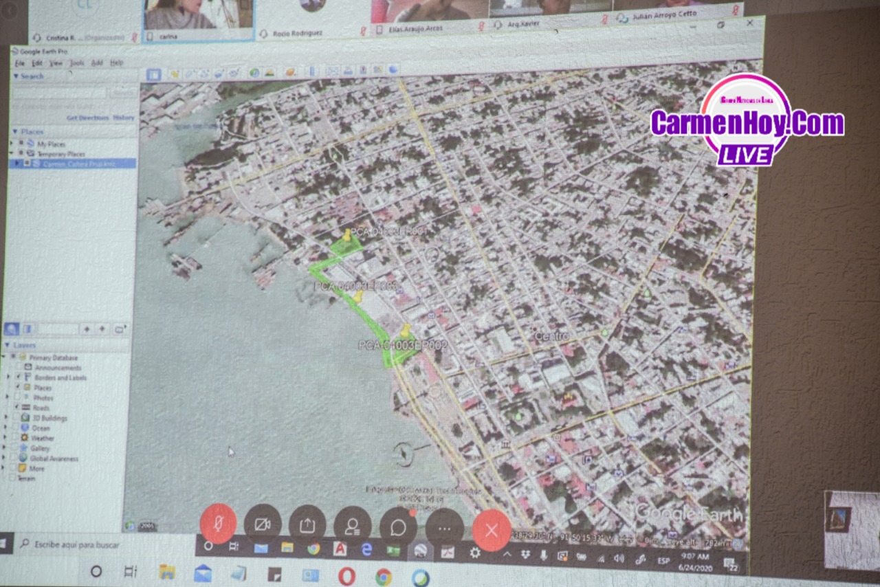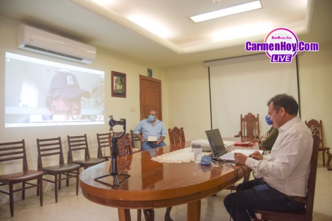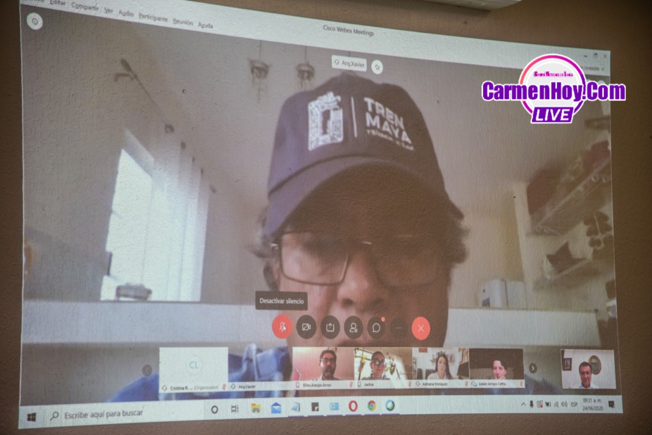 Durante una reunión por videollamada que sostuvo hoy por la mañana el Alcalde con la Subsecretaría de Sedatu, Carina Arvizu Machado, el Secretario Técnico de Dirección General y Gerente de Seguimiento y Supervisión de Obra del Fondo Nacional de Fomento al Turismo (Fonatur), Elías Araujo Arcos y Xavier García Romero respectivamente.