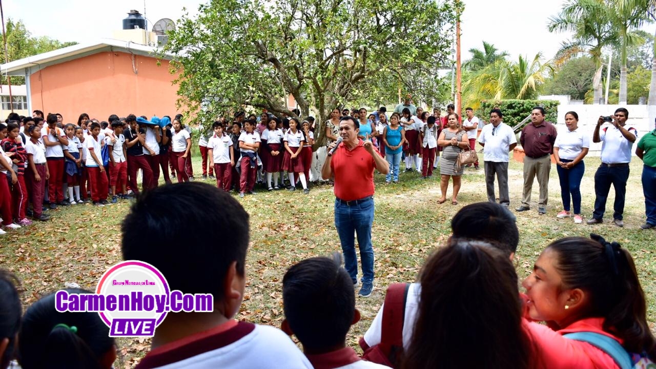 Siguiendo con el apoyo a las comunidades, el Presidente Municipal de Carmen, Óscar Román Rosas González, durante una intensa gira de trabajo entregó apoyos a centros escolares de nivel primaria y secundaria, así como de la comisaría ejidal de Chekubul.