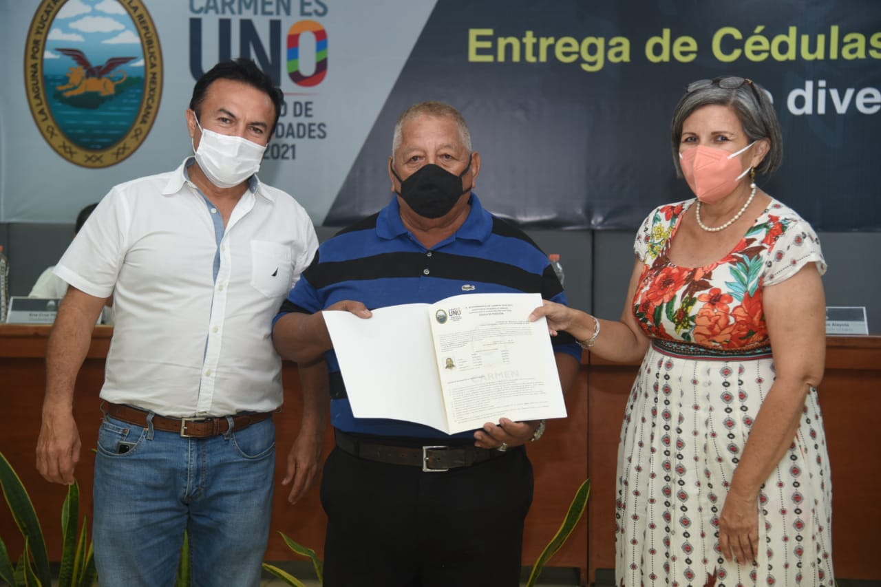 Posteriormente el Alcalde entregó las cédulas a las familias que residen en las colonias: Manigua, Pedro Saenz, Restito de las Pilas, 23 de Julio, Santa Rosalía, San Nicolás, Independencia, Salitral, Obrera, Belisario Domínguez, Bivalvo y Ortiz Ávila.