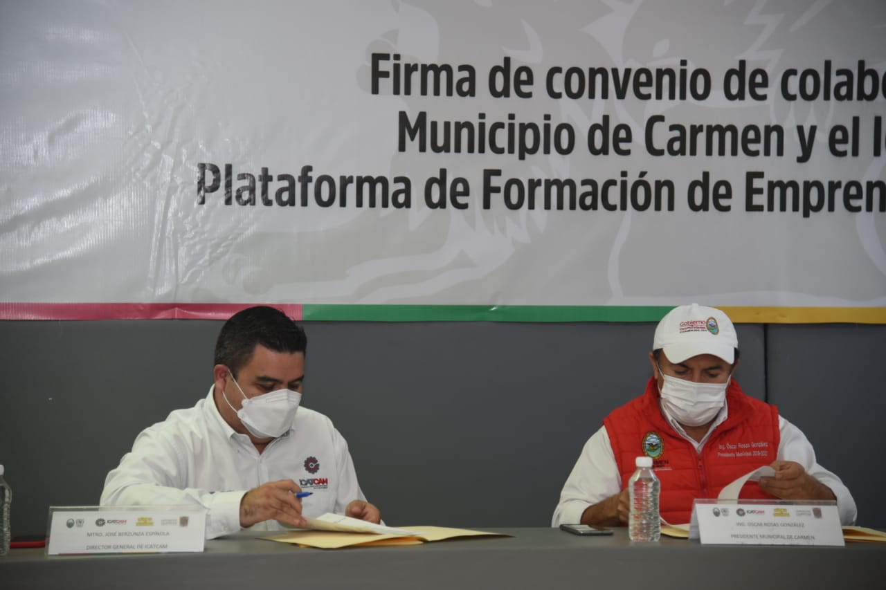 Con el objetivo de impulsar a los emprendedores carmelitas, el Gobierno Municipal de Carmen, que encabeza el Alcalde Óscar Rosas González firmó un convenio con el Instituto de Capacitación para el Trabajo en el Estado de Campeche (Icatcam) para la creación de la plataforma para la Formación de Emprendedores en Línea (FEEL).