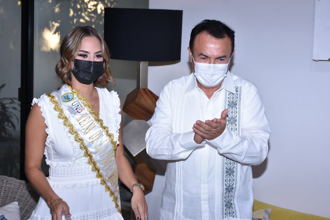 Con el objetivo de continuar reactivando la económica local y mantener nuestras tradiciones, el Presidente Municipal de Carmen, Óscar Rosas González presentó e impuso la banda a la reina de la Feria Virtual Carmen 2021 y soberana de los LXII Juegos Florales Iberoamericanos Carmen 2021, Ana Isabella Escobedo López.