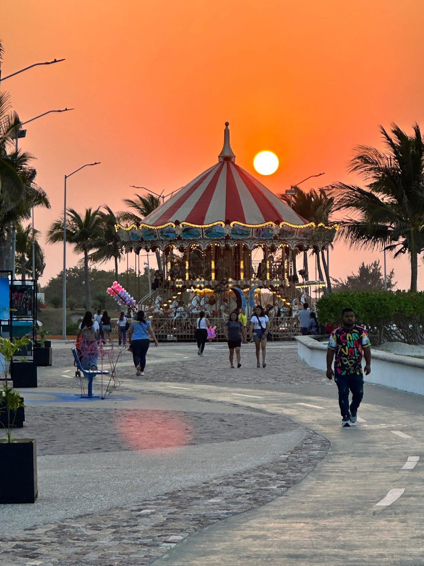 Además, diviértete con los atractivos para chicos y grandes, desde el carrusel veneciano, la rueda de la fortuna, los juegos inflables; así como de descansar en el área de camastros y comprar bonitos recuerdos y así apoyar a los emprendedores del Bazar Carmen Alegre, por las noches puedes cenar en la zona foodtruck con ricos antojitos como birria, taquitos, pizzas, hotdogs, papas y malteadas.