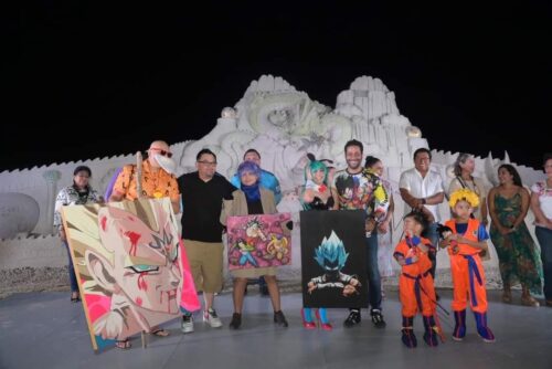 La gran fiesta playera, que tiene lugar a lo largo de Playa Norte y el Malecón Costero, inició con la inauguración de la monumental escultura de arena, creadas por los escultores y artistas del Colectivo “Arenas Doradas”, rindiendo homenaje a Akira Toriyama (1955-2024) uno de los autores más destacados del Manga, y creador de los personajes más emblemáticos de la cultura pop, Gokú del anime Dragon Ball.