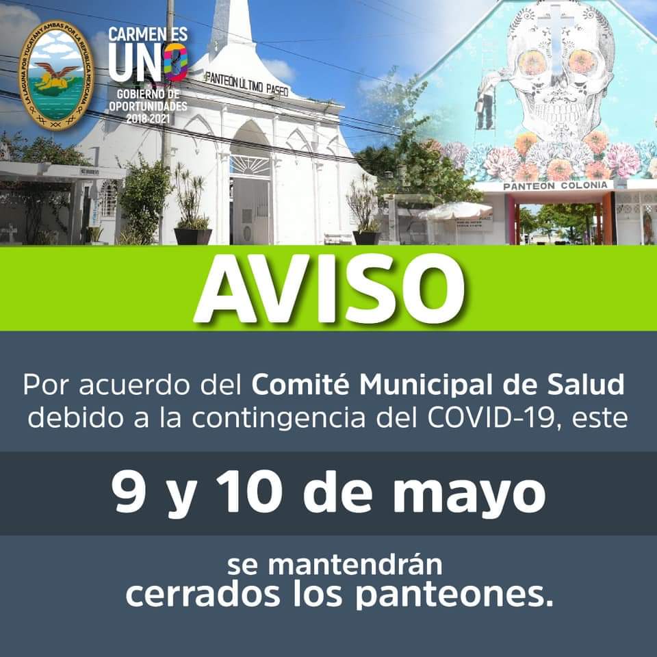 Por ello, y ante la celebración del “Día de las Madres” que se festeja este 10 de mayo, Rosas González replicó la recomendación realizada por la Secretaría de Salud del Estado, el cual fue dirigido a todos los Alcaldes de los municipios del Estado de Campeche, para girar instrucciones del cierre total de los cementerios durante este fin de semana.