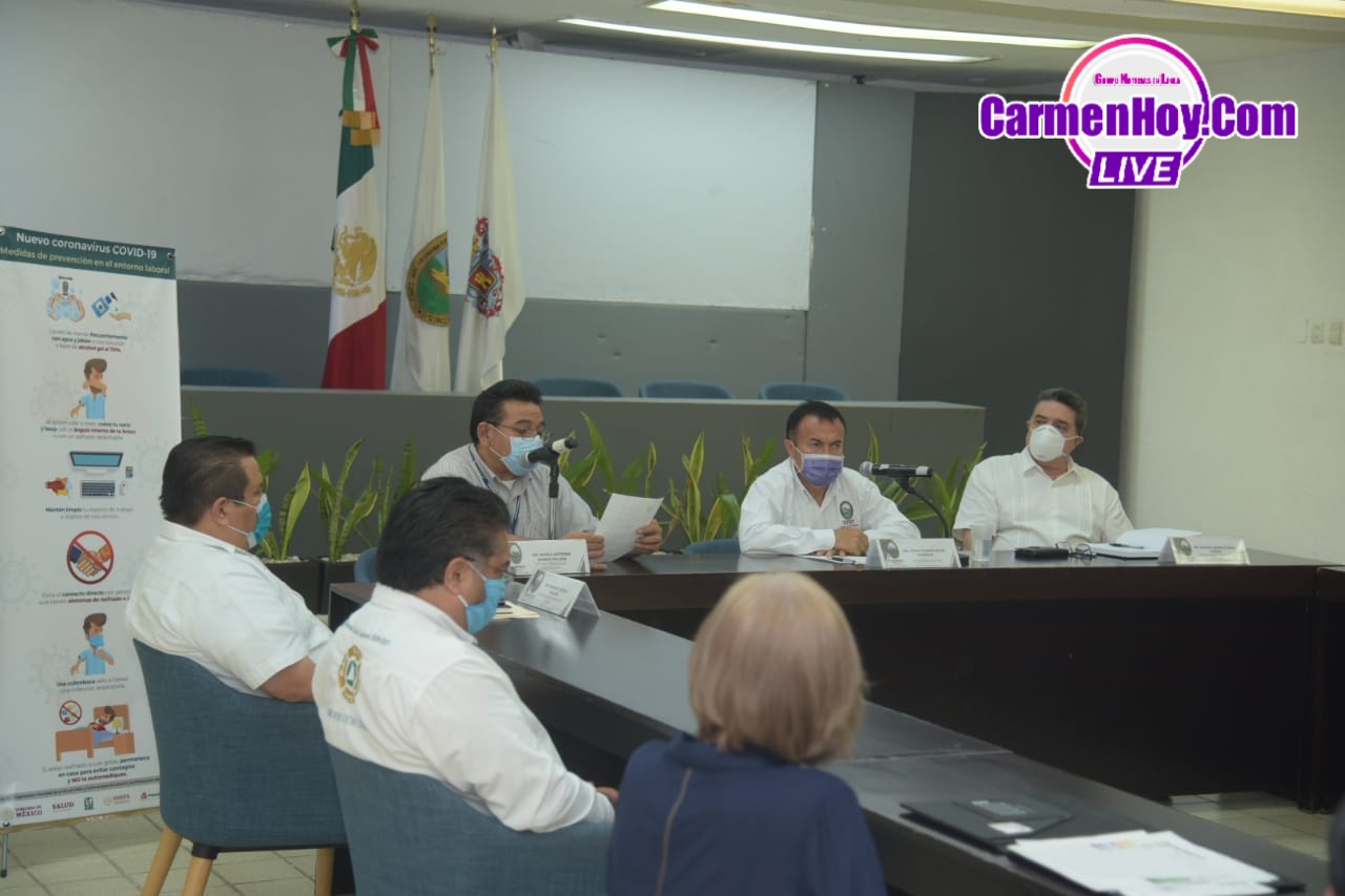 Estuvieron presentes: el Presidente Municipal de Carmen, Óscar Román Rosas González; el Director de Protección Civil, Jorge Sarricolea Chablé; el Director de Servicios Básicos, Jaerhs Echavarría Martínez; el Coordinador de Bienestar Social, Eugenio Verdejo Ballina; el Subsecretario de Salud en Carmen, Manuel Ernesto Rivas Batista; el Jefe de la Jurisdicción Sanitaria Número 3 (JSN3), Marco Antonio Ramón Palmer.