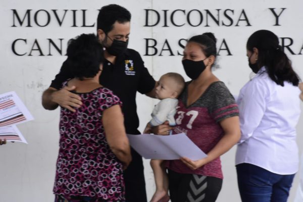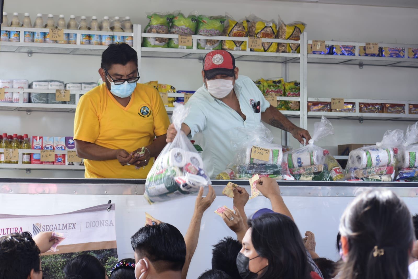 Posteriormente, las autoridades presentes hicieron entrega de cinco tarjetas simbólicas de Liconsa a las ciudadanas María del Carmen Castañeda González, María González Chan, Elizabeth Valencia Hernández, Doris Coba Vistrahin y Litzel del Carmen Miss Cruz. Tras ello, se efectuó el corte del listón inaugural y los ciudadanos procedieron a formarse en el puesto móvil para realizar sus compras de productos a bajo costo, con las que se lograron beneficiar a más de un centenar de familias.