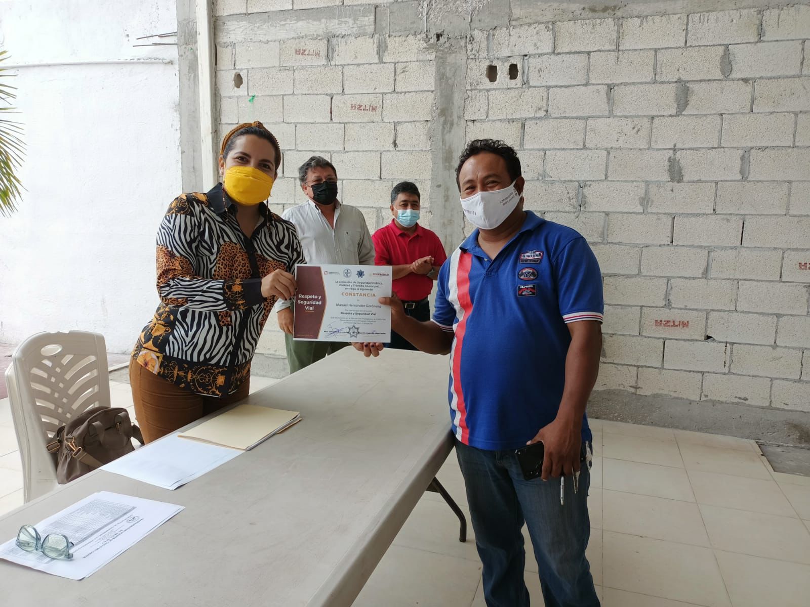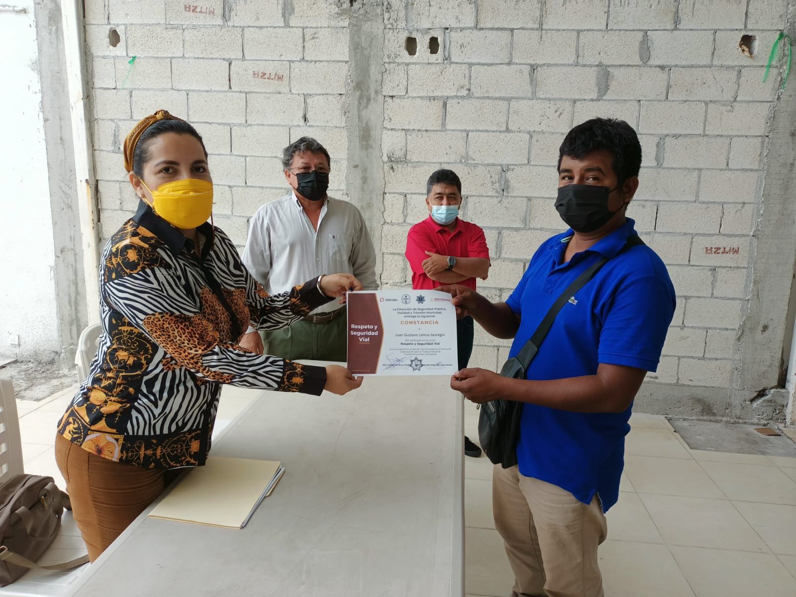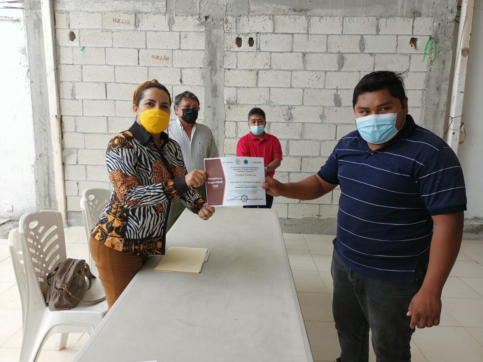 Los conductores de combis recibieron este miércoles sus reconocimientos por parte de la Dirección de Seguridad Pública, Vialidad y Tránsito Municipal (DSPVTM) por haber concluido satisfactoriamente esta capacitación, con la cual se busca garantizar un mejor servicio por parte del transporte público.