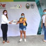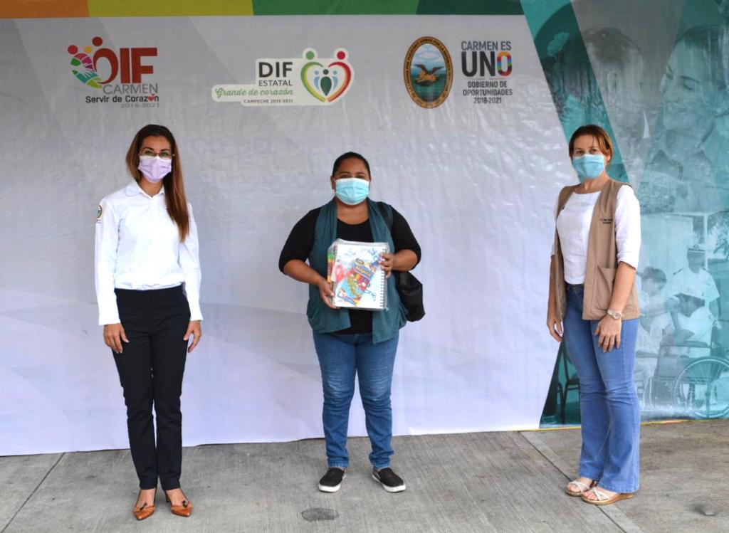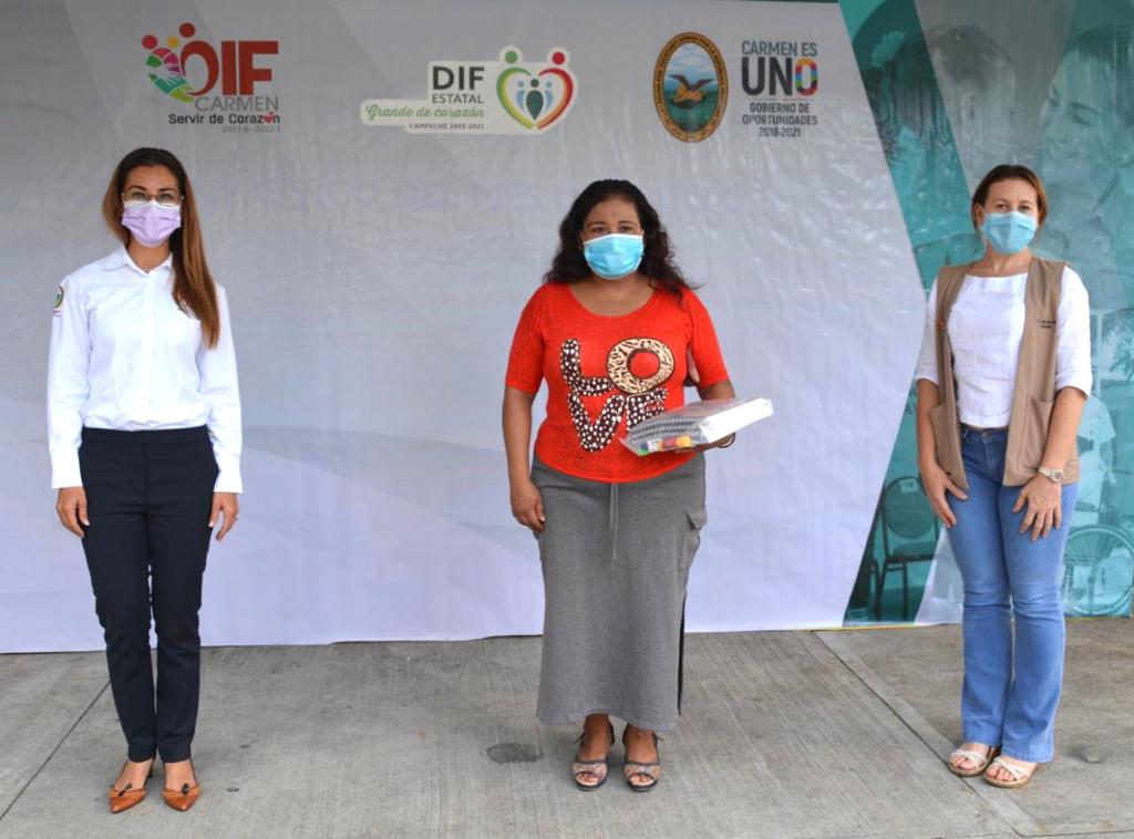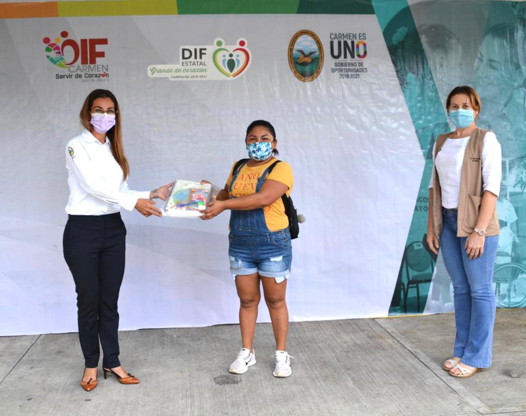 La Presidenta del Patronato del DIF Carmen, entregó de manera simbólica, cinco de los 22 paquetes de útiles escolares para nivel secundaria a madres de los menores que forman parte del programa asistencial educativo, que es aplicado a través de PRODIFDNNA.
