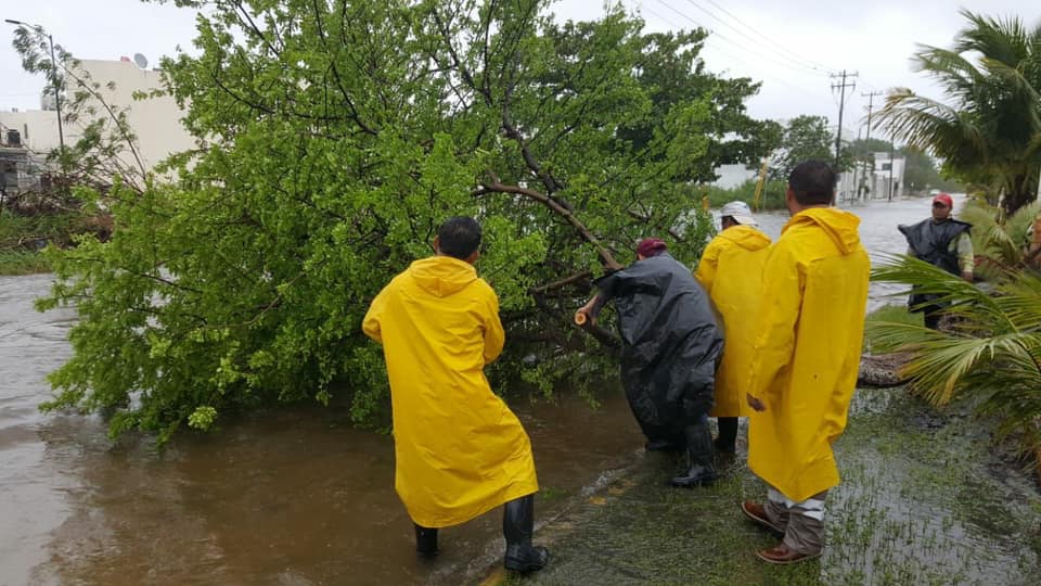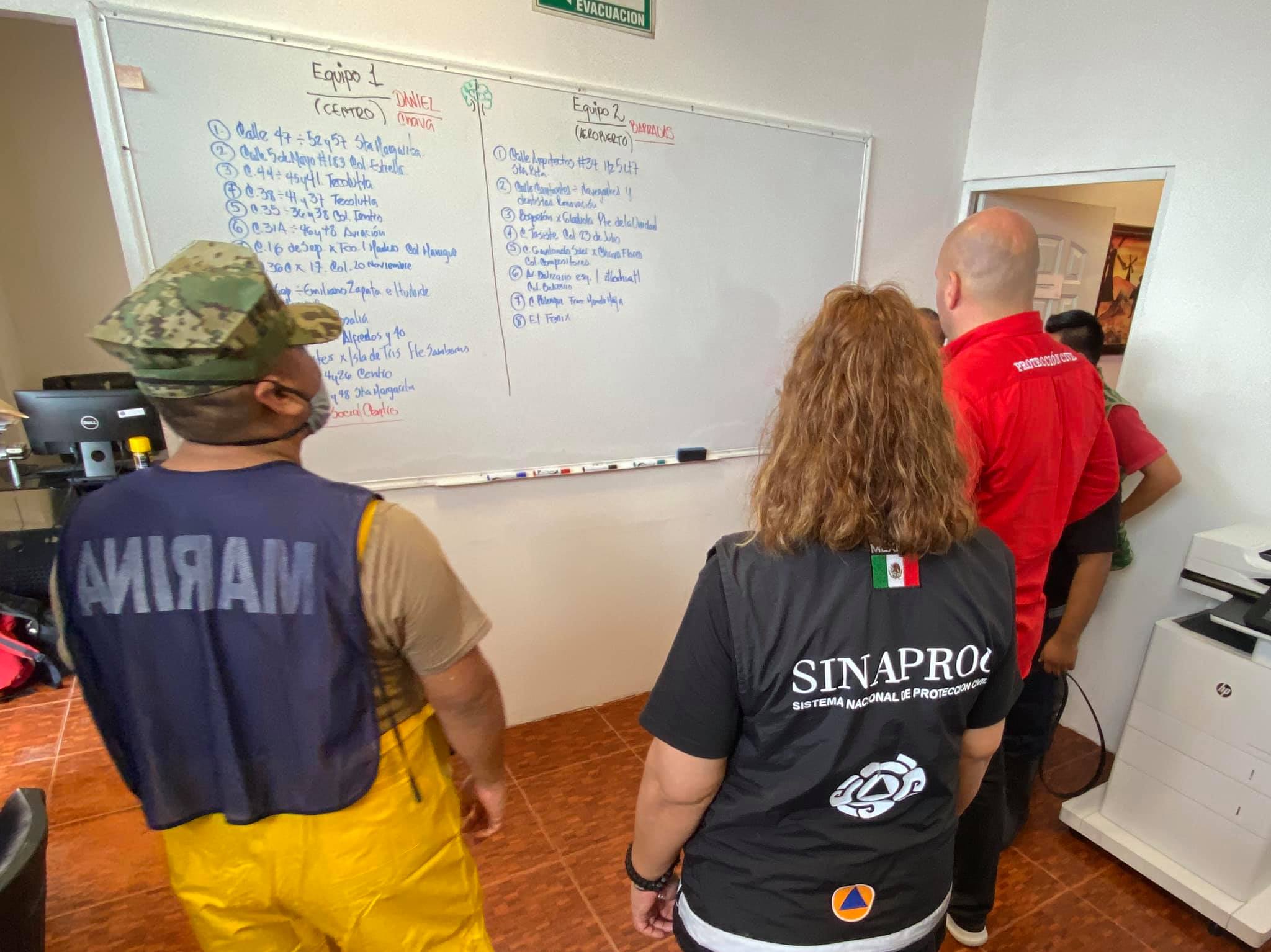En esta etapa, en coordinación con la Marina, la Guardia Nacional y Servicios Públicos, se realizan recorridos de remoción de árboles y estructuras caídas o en riesgo.