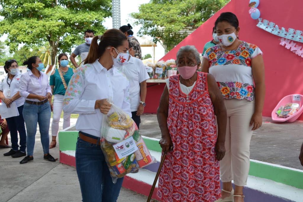 La Presidenta del Patronato del Sistema Municipal DIF Carmen, Viridiana Suárez de Rosas, entregó bañeras y paquetes asistenciales alimentarios a 27 futuras mamás y 50 despensas a adultos mayores y personas con discapacidad.