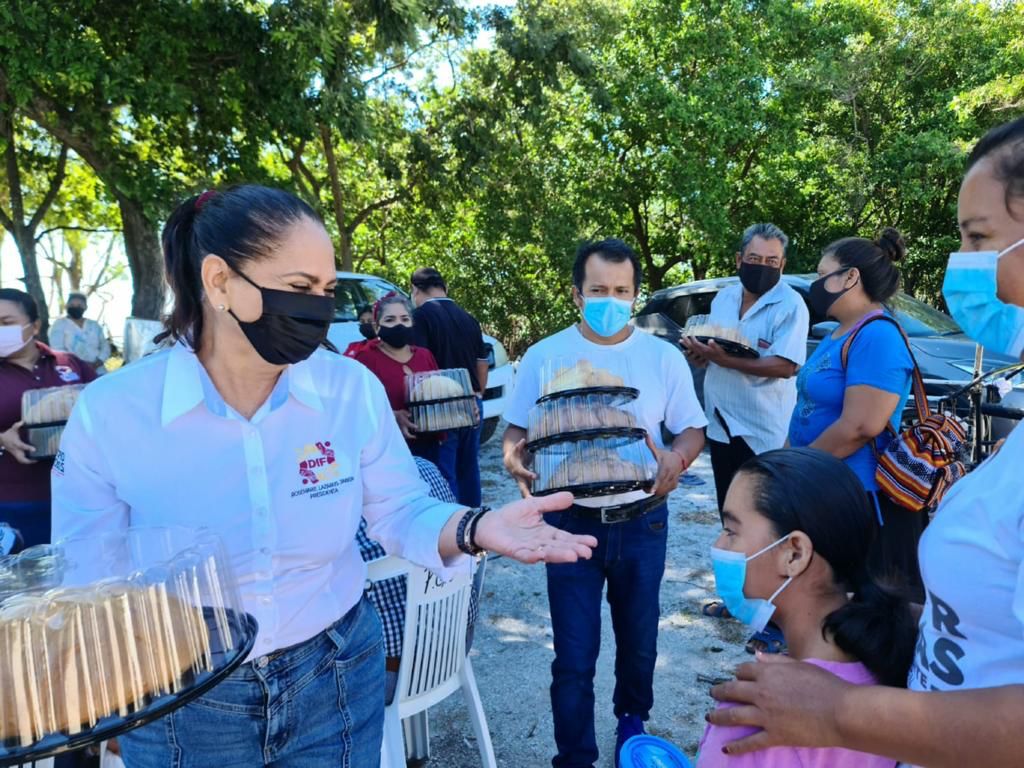 Sirviendo con vocación en beneficio de quienes más lo necesitan, la Presidenta del Patronato del Sistema Municipal para el Desarrollo Integral de la Familia (DIF Carmen), la Sra. Rosemarie Lazarus Jaber, y la Directora de dicha dependencia, Diana Villanueva Badillo, entregaron desayunos calientes en las inmediaciones del asentamiento Arroyo de Los Franceses.