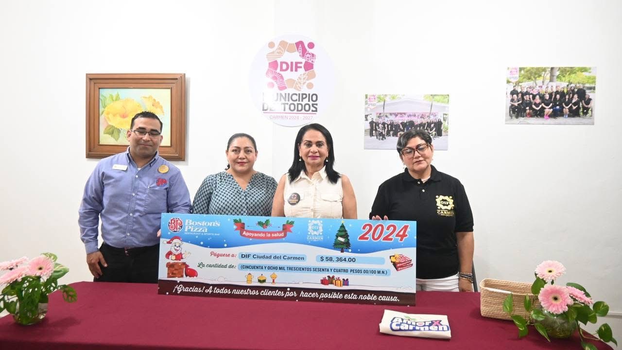 En esta ocasión, la entrega de apoyos a nueve familias fue encabezada por la presidenta del DIF Carmen, la Sra. Rosemarie Lazarus Jaber, acompañada por la directora Diana Villanueva Badillo, el gerente de Boston’s, Francisco del Carpio, y la gerente de marketing de la misma empresa, Rosa Isela Ocampo.