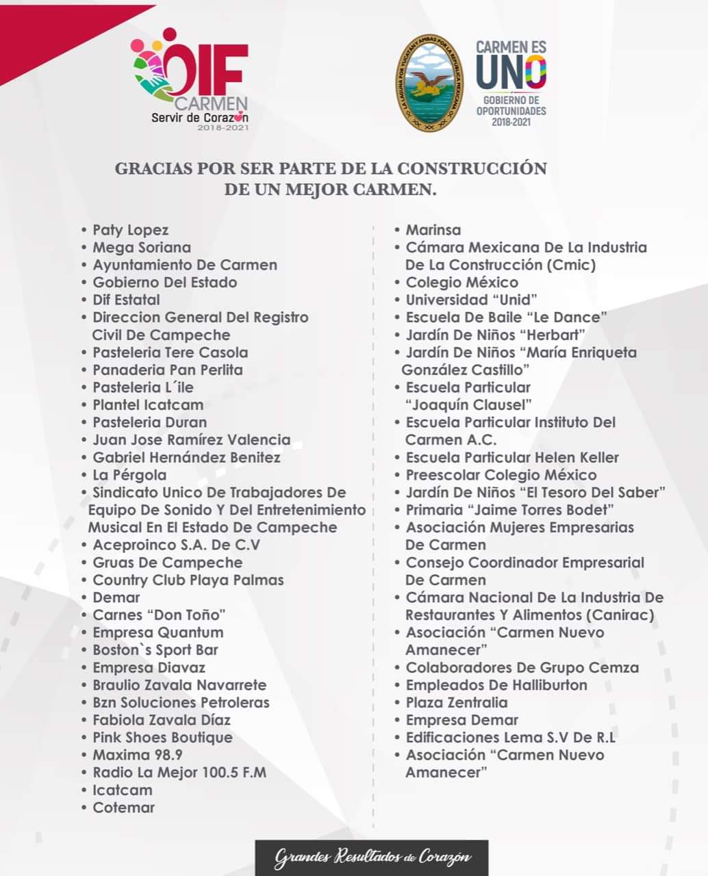 DIF CARMEN agradece la participación y suma de esfuerzos entre sociedad-empresas-gobierno generamos Grandes Resultados De Corazón con el fortalecimiento de los distintos programas asistenciales de DIFCarmen.
