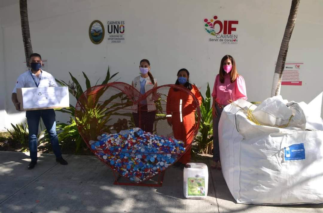 El corazón colector de DIFCarmen continúa recibiendo la donación de tapas y botellas de plástico.
