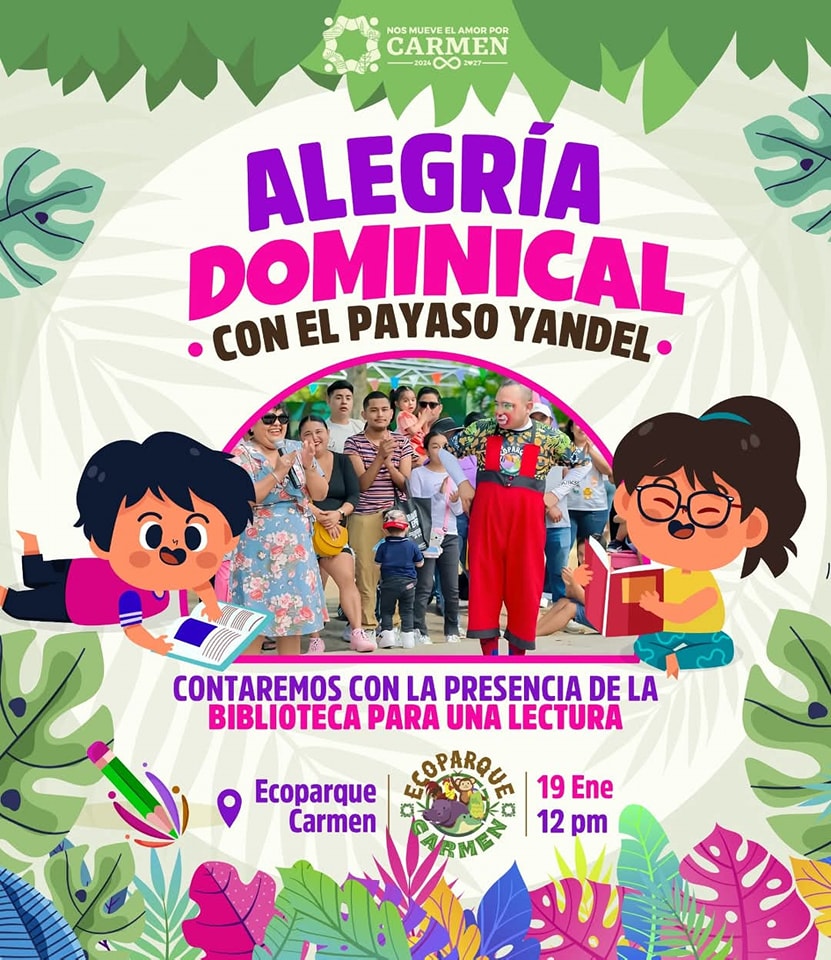 Hoy te esperamos a las 12pm con tus PEQUES para un domingo de Alegria Dominical en el Ecoparque Carmen con el payaso Yandel
