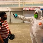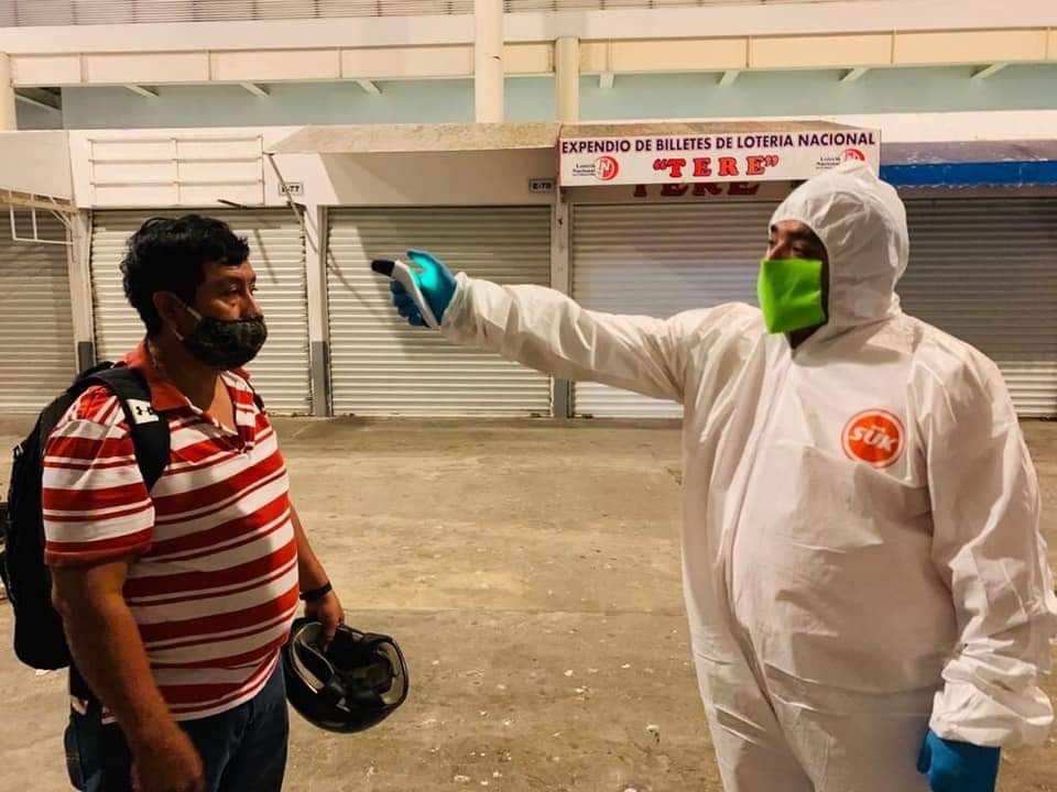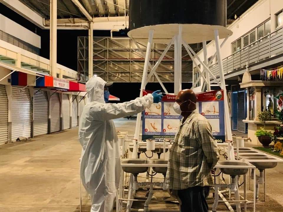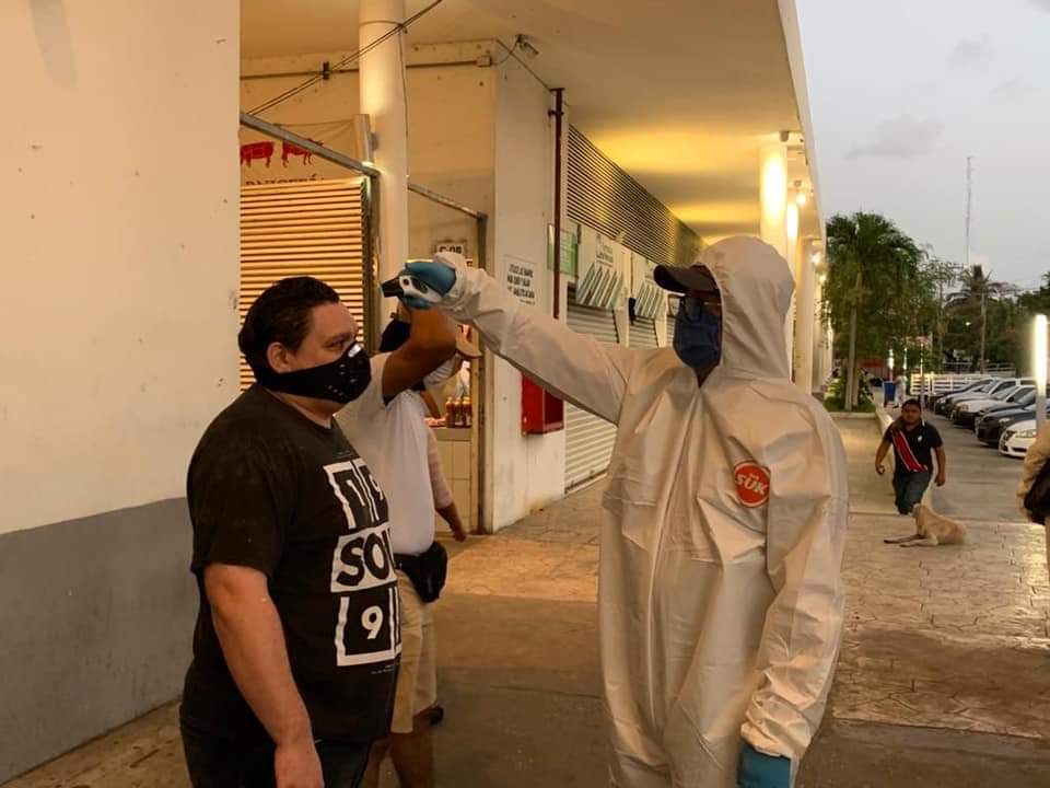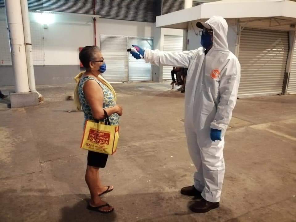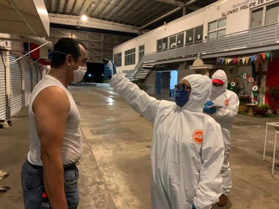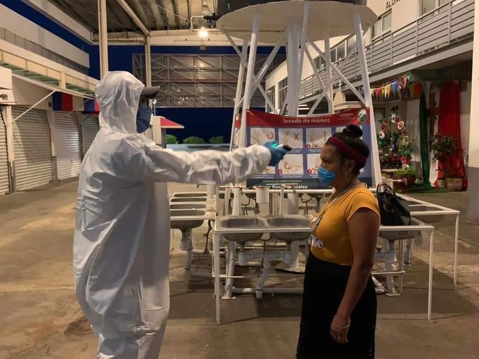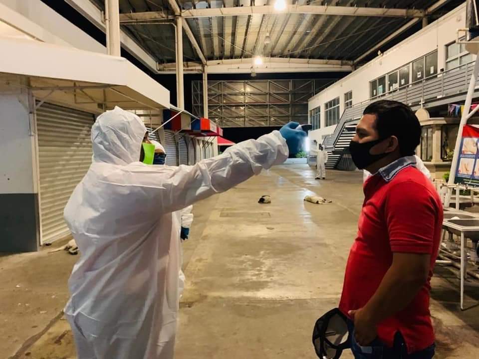 Desde muy temprano, personal de la Dirección de Servicios Básicos realizó la toma de temperatura a locatarios del mercado municipal “Alonso Felipe de Andrade”.