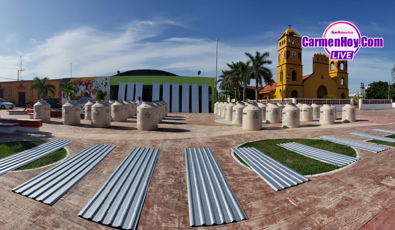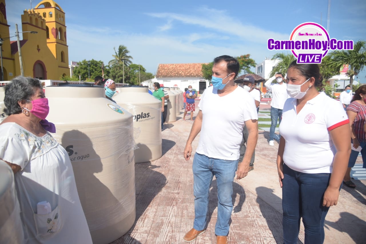 Continuando con el apoyo a las familias de Sabancuy, el Alcalde de Carmen, Óscar Rosas González y la Presidenta de la H. Junta Municipal, Angélica Herrera Canul entregaron tinacos rotoplas y láminas, a través del convenio con la Congregación Mariana Trinitaria.