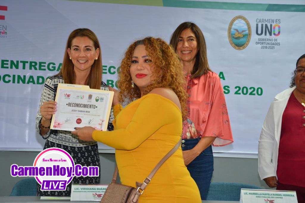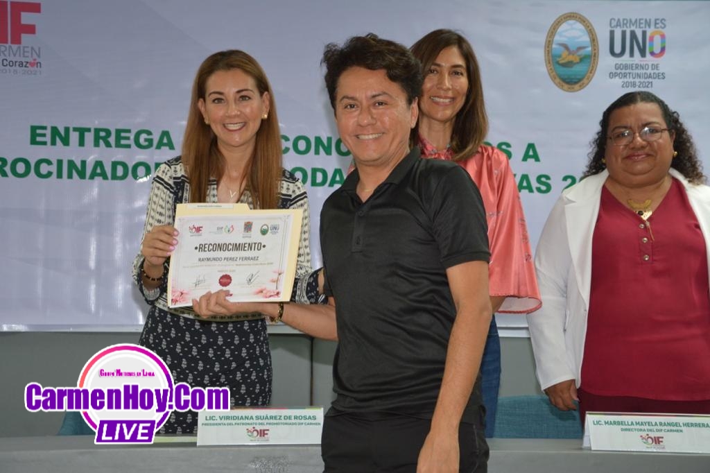 Tras la proyección de un video alusivo al programa, Suárez de Rosas, acompañada de la Directora del DIF Carmen, Mayela Rangel Herrera, la Presidenta de la Junta Municipal de Sabancuy, Angélica Herrera Canul y la Procuradora Auxiliar de Protección a Niños, Niñas y Adolescentes, Gabriela López Sánchez, hizo entrega de reconocimientos a los patrocinadores.