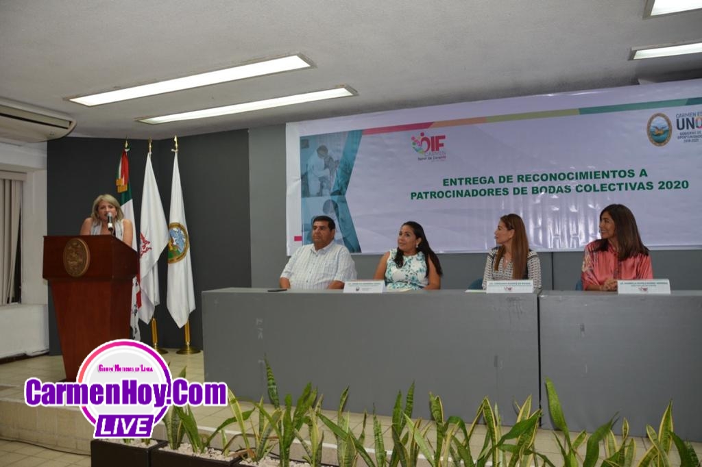 La Presidenta del Patronato del DIF Carmen, también agradeció al Gobierno del Estado, que encabeza el licenciado Carlos Miguel Aysa González, así como a la Presidenta del Patronato del DIF Estatal Campeche, licenciada Victoria Damas de Aysa, por el apoyo otorgado para el desarrollo del programa, que permitió el exento del pago del certificado médico y la expedición del acta matrimonial, siendo además padrinos de esta hermosa unión.