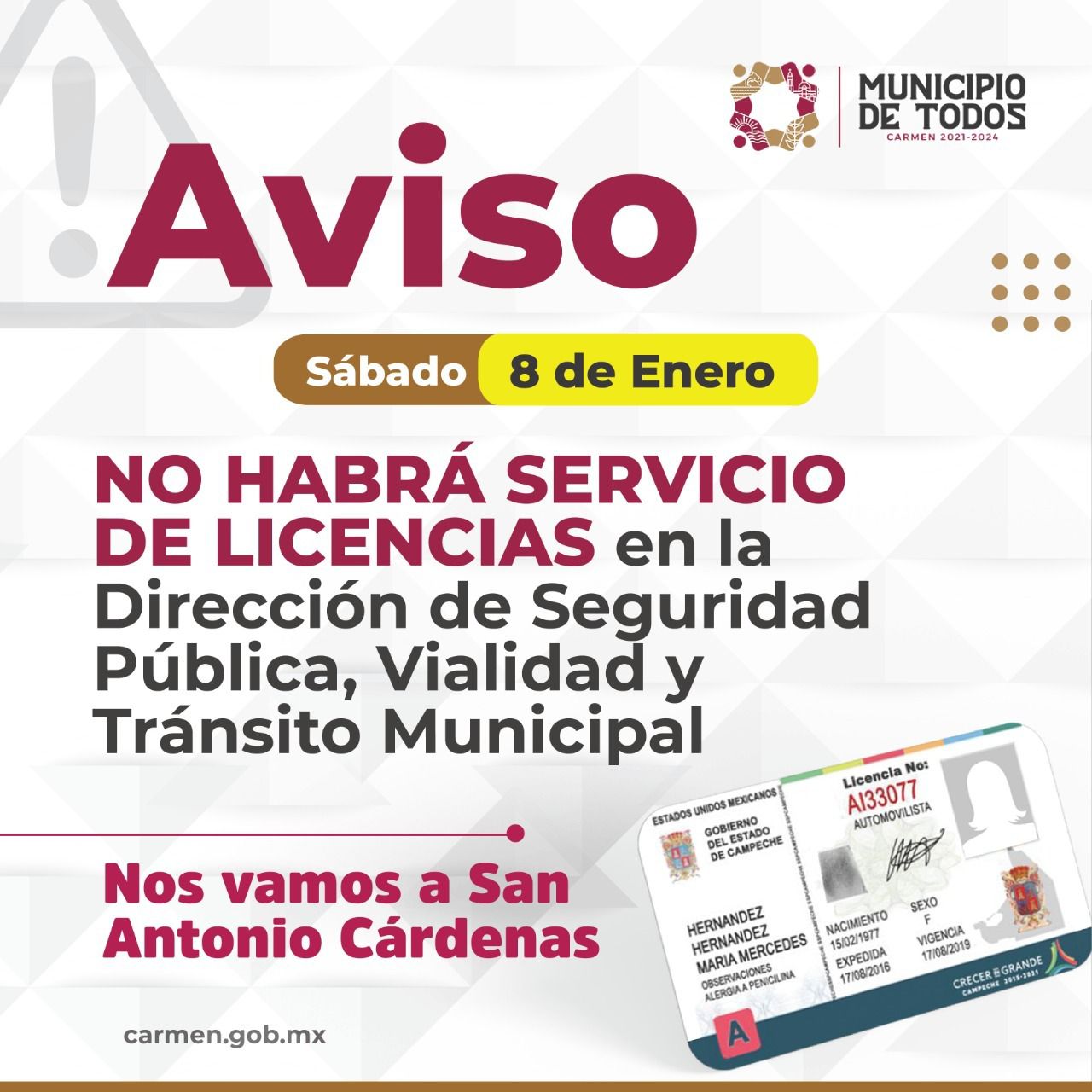 Con el objetivo de facilitar los trámites de expedición de licencias y verificación vial para que sean más accesibles para los habitantes de San Antonio Cárdenas, este sábado 8 de enero la Dirección de Seguridad Pública, Vialidad y Tránsito Municipal (DSPVTM) llevará su Módulo Móvil a esta localidad.