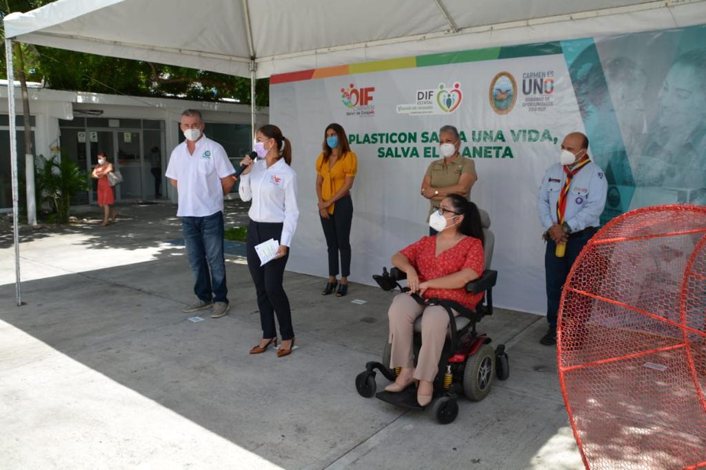 “Seguimos haciendo equipo por Carmen y sus grupos vulnerables” afirmó la Presidenta del Patronato del DIF Carmen, Viridiana Suárez de Rosas al dar el arranque del Plasticón “Salva una Vida, Salva el Planeta”, que tiene como objetivo reunir la mayor cantidad de tapas y botes de plástico, que se transformarán en apoyos para tratamientos médicos a niños y niñas con diagnóstico de Cáncer.