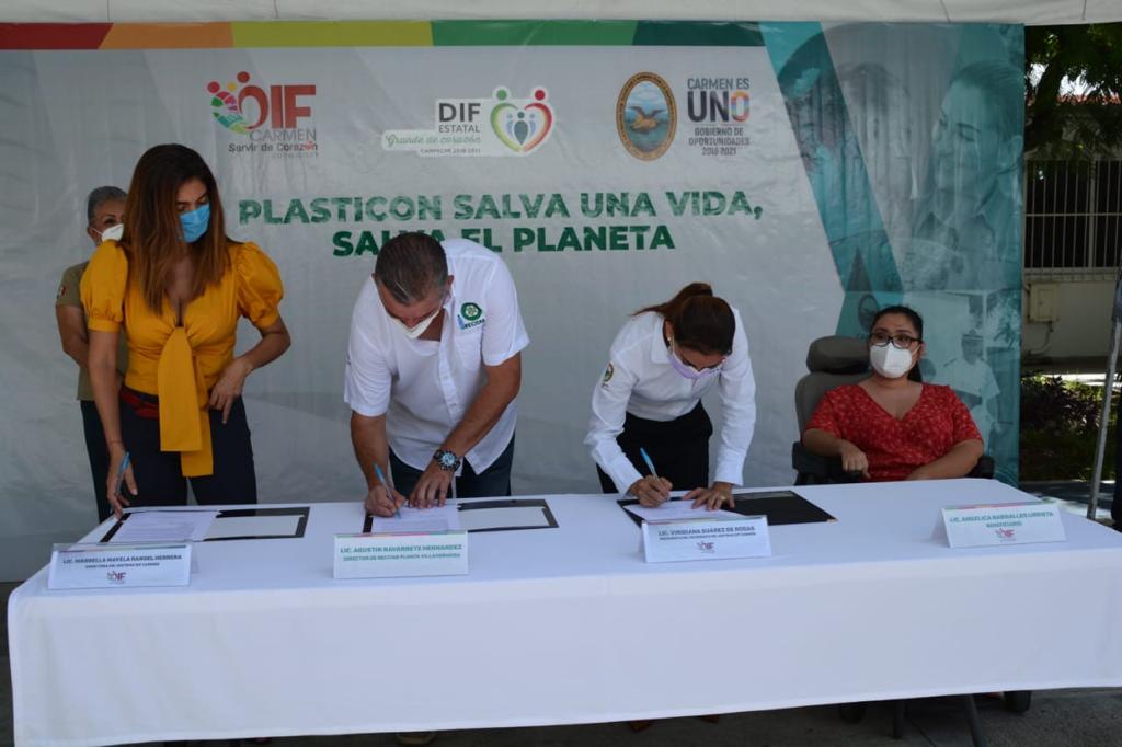 En este marco se firmó un acuerdo de trabajo con la recicladora para llevar a efecto la entrega y destino final del plástico. El Centro de Acopio se encuentra situado en las instalaciones del DIF Carmen, en calle 35 entre 52 y 54 de la colonia Doctor Héctor Pérez Martínez.