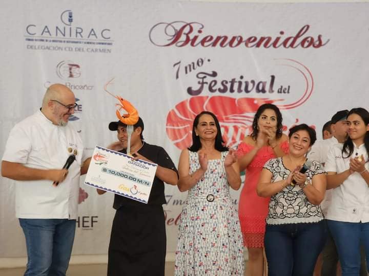 Presidenta del DIF Carmen la sra, Rosemarie Lazarus Jaber presente en el Concurso de Cocina Delicias del camarón en el marco del 7mo festival del Camarón