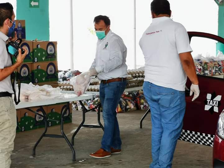 Continuando con el programa de apoyo de alimentos por la contingencia sanitaria del COVID-19, el Presidente Municipal de Carmen, Óscar Román Rosas González entregó a más de mil 700 choferes y concesionarios del Sindicato Único de Trabajadores del Volante (SUTV), alimento y kits de cubrebocas y guantes, contribuyendo a mejorar su economía familiar.