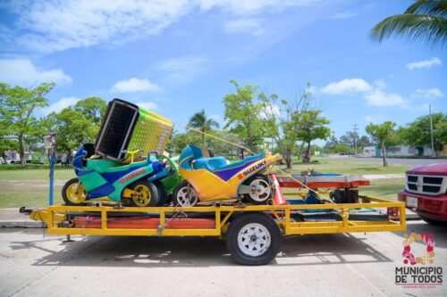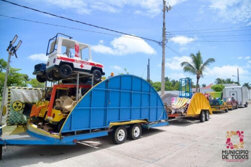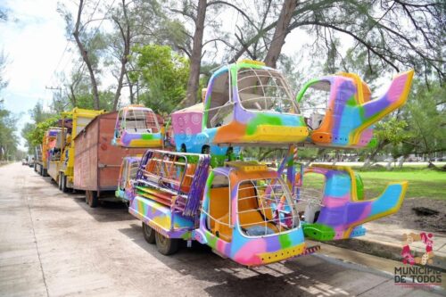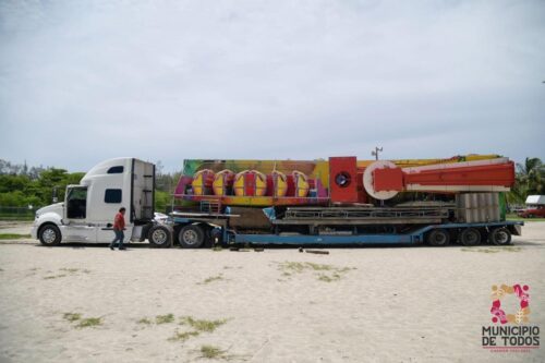 Llegaron mas camiones con juegos mecánicos, cada vez más cerca del inicio de la GRAN FERIA CARMEN 2024
