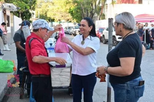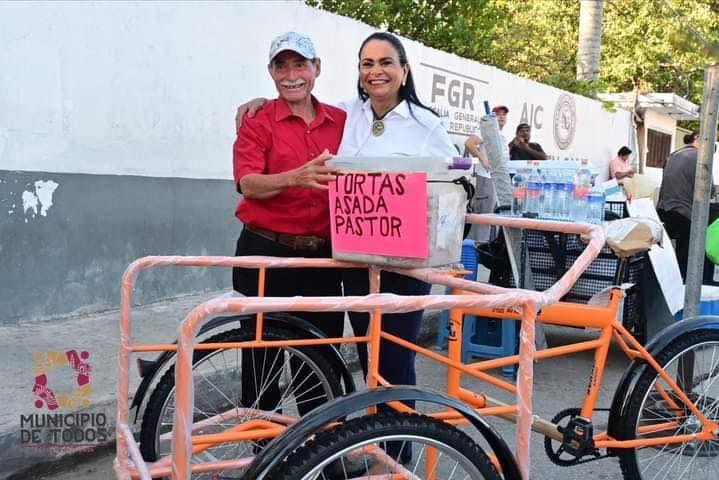 Muy temprano la presidenta del patronato del Dif Carmen la señora Rosmarie Lazarus sorprendió a don Evelio de la Cruz con un triciclo que le facilitará la venta de sus sabrosas tortas y apovechando a comprar unas para el desayuno