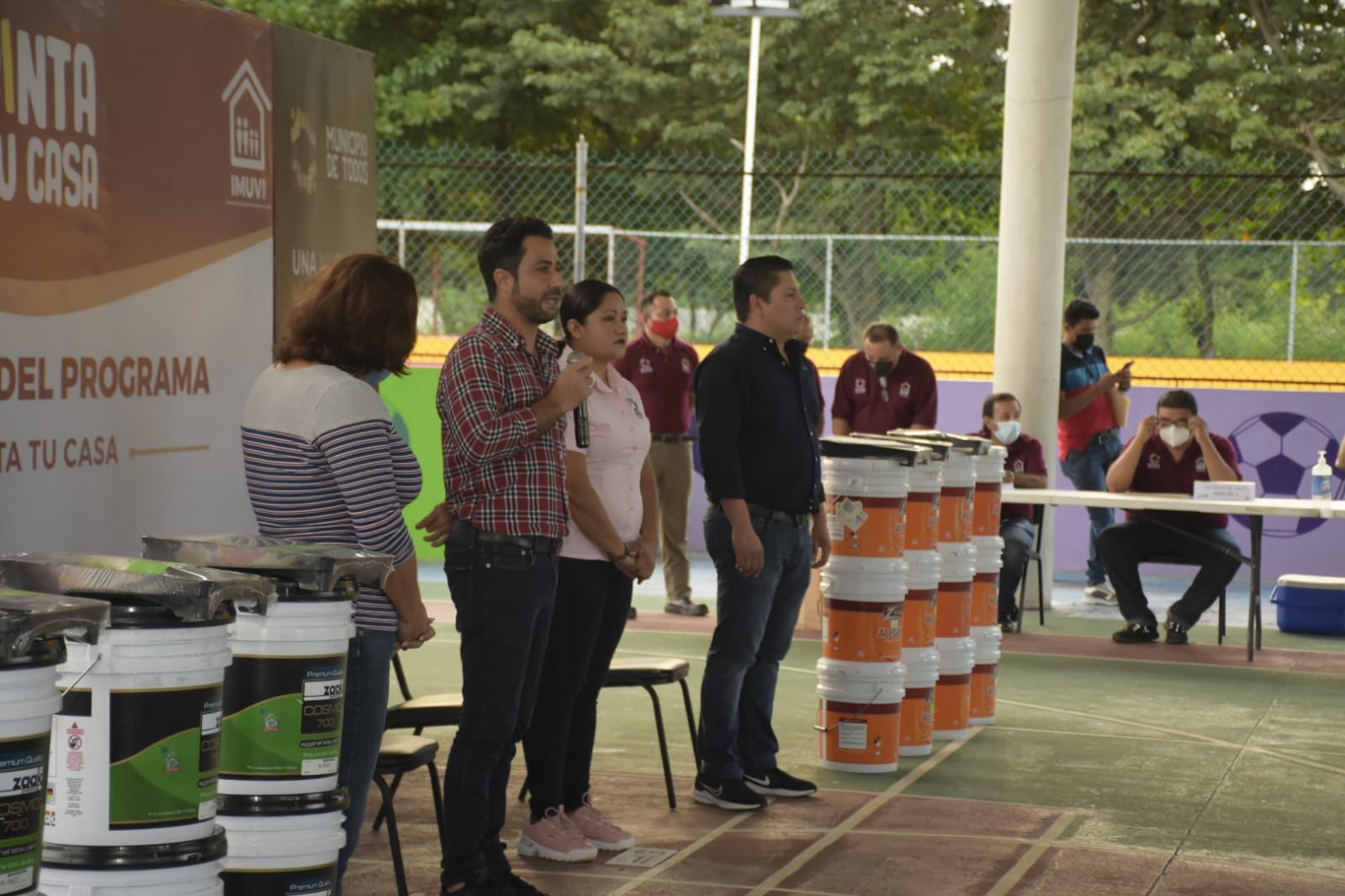 “El objetivo es brindarles apoyo con la mitad de la pintura para que mejoremos el espacio donde vivimos, la tradición es que para fin de año se le da una retocada a nuestras casas; por eso mismo también como gobierno estamos rehabilitando los diversos espacios públicos, pintando e iluminando parques y canchas, para que estos sitios se vean vivos y alegres”.