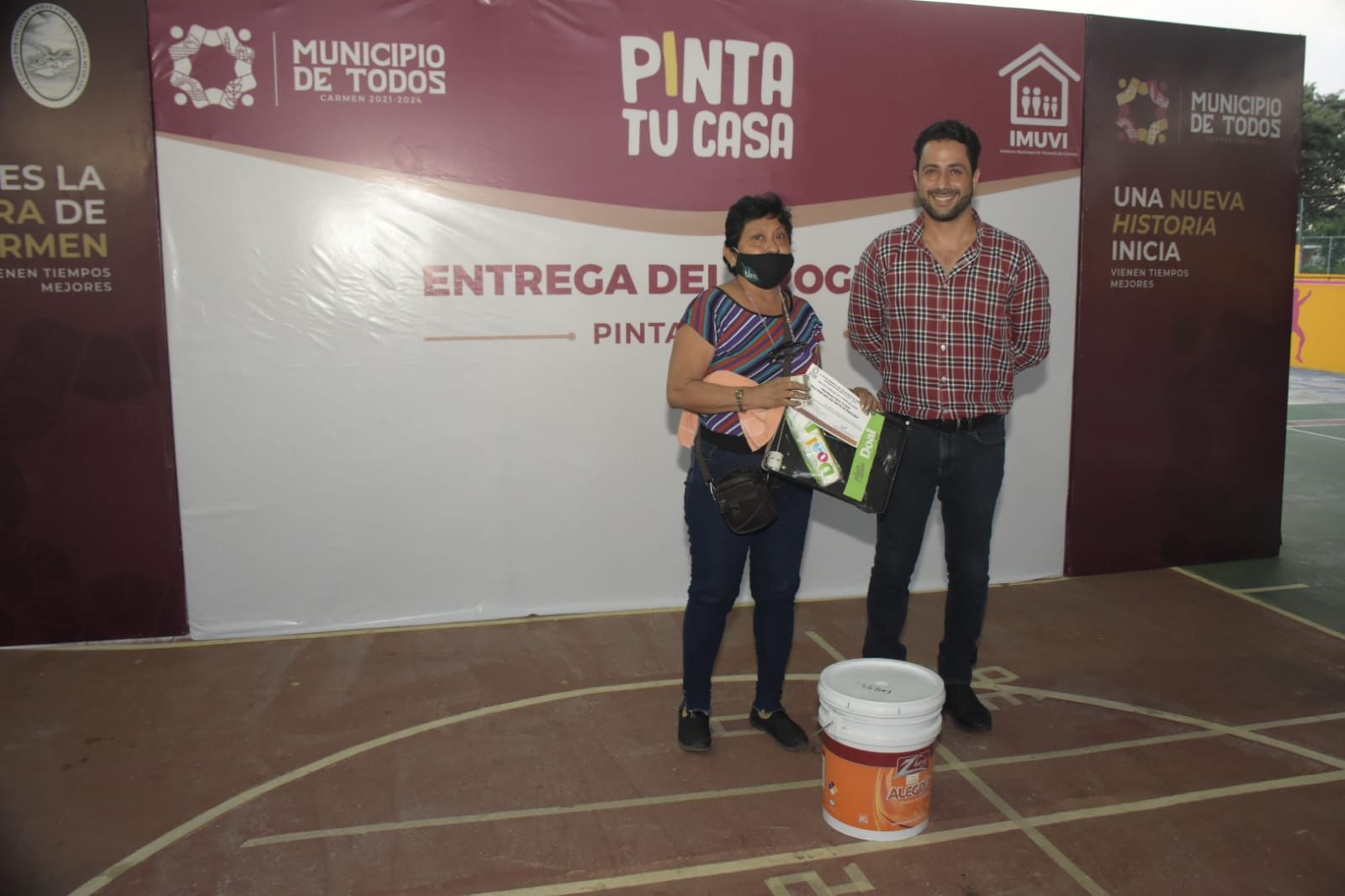 Con esta iniciativa, el Gobierno Municipal de Carmen aportó el 50% para la renovación de pintura en las viviendas, además de dotar de insumos para la aplicación como son rodillos y brochas de forma gratuita.