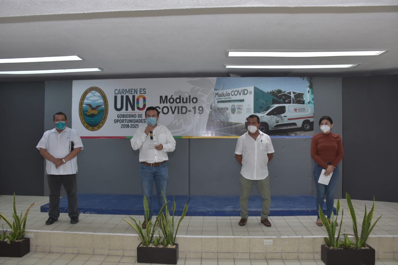 Estuvieron presentes: el Presidente Municipal de Carmen, Óscar Rosas González; el Coordinador de Bienestar Social, Eugenio Verdejo Ballina; el encargado del Módulo COVID-19, César Alonso Montes De Oca Valdison; la Coordinadora del Área Médica del Sistema Municipal DIF Carmen, Adriana Verdejo Arrocha.