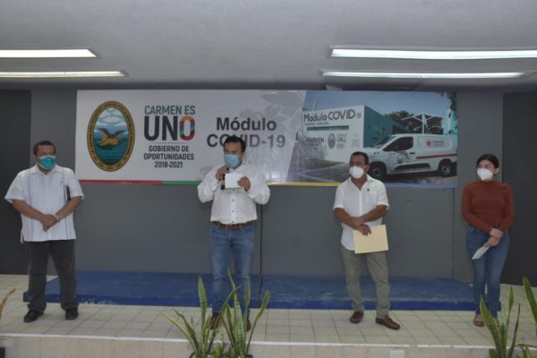 Asimismo el Alcalde significó la ardua labor del Encargado del Módulo COVID-19, César Montes de Oca Valdison, porque a pesar de todos los riesgos que se tienen al atender pacientes con la enfermedad, continúa acudiendo a los domicilios de los carmelitas con enfermeras en el vehículo que adquirió el Gobierno Municipal para la atención médica.