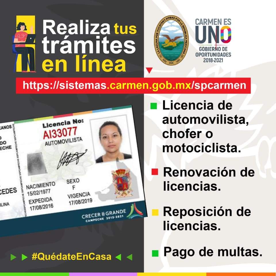 En el siguiente link https://sistemas.carmen.gob.mx//spcarmen/ podrán realizar sus trámites en línea referente a: