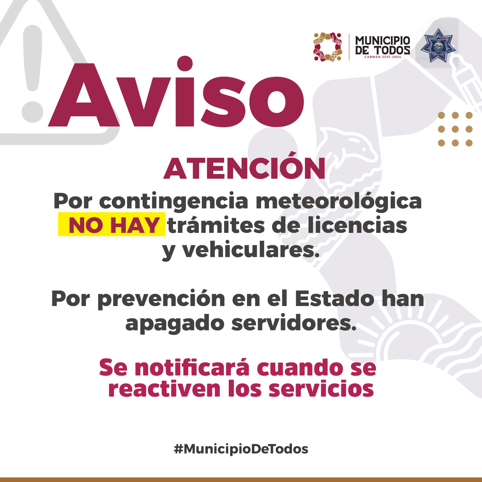 Por contingencia meteorológica NO HAY trámites de licencias y vehiculares