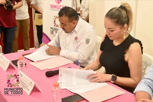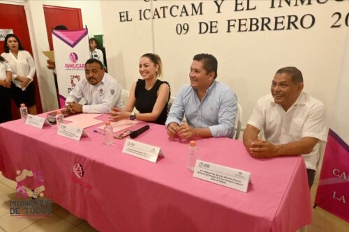 La directora del Inmucar, Gladys Sofía Rivera López, y el director general del Icatcam, Juan Pedro Huchín Tuz, anunciaron que a través de la firma de este convenio permitirán el acceso a más y mejores opciones de inserción laboral para las usuarias a favor de su economía familiar.