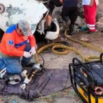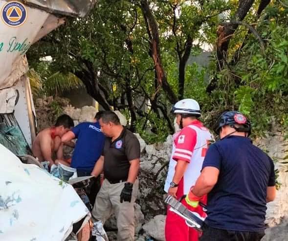 Con la herramienta “quijadas de la vida”, Protección civil rescata a personas prensadas en vehículo accidentado, en el km. 34 de la carretera Carmen – Puerto Real;