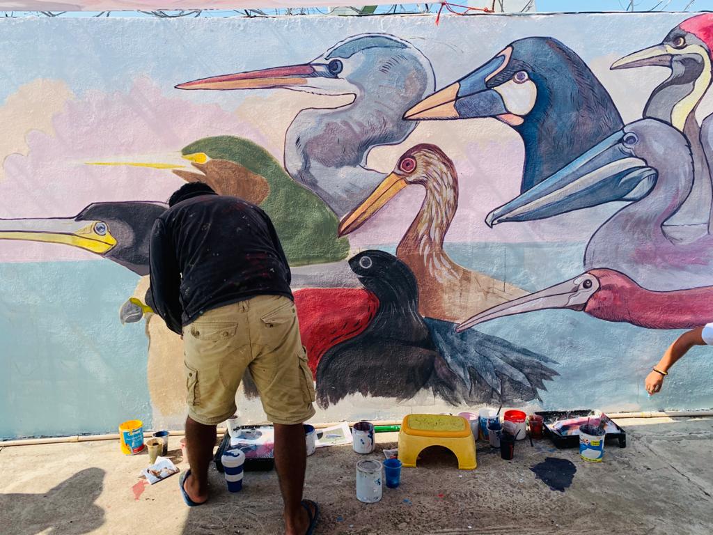 Con el objetivo de fomentar las habilidades en las artes plásticas en los menores que son atendidos en la Casa MECED “Arrecife” , a fin de encontrar en esta manifestación artística una alternativa de expresión y hasta un oficio que les pueda generar una remuneración, durante tres días los artistas plásticos Cindy Lara y Julio Torres, mostraron a los menores que ahí son atendidos, la técnica de elaboración de murales a través de la obra “Aves de Carmen”, misma que fue plasmada en una de las paredes del área de esparcimiento de la Casa MECED.