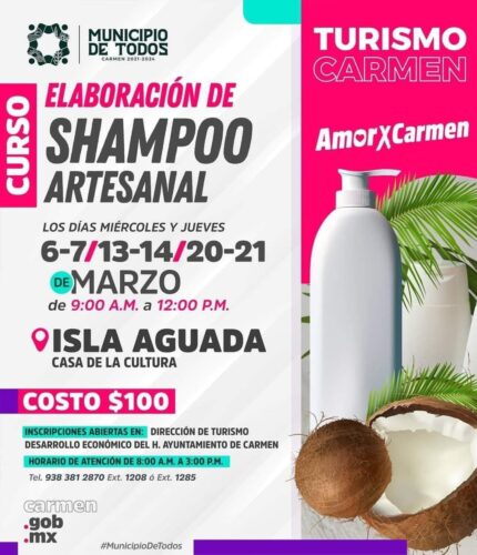 Inscríbete al curso de elaboración de Shampoo artesanal, inicia este 4 de marzo en el museo victoriano niévez céspedes y el 6 de marzo en Isla Aguada