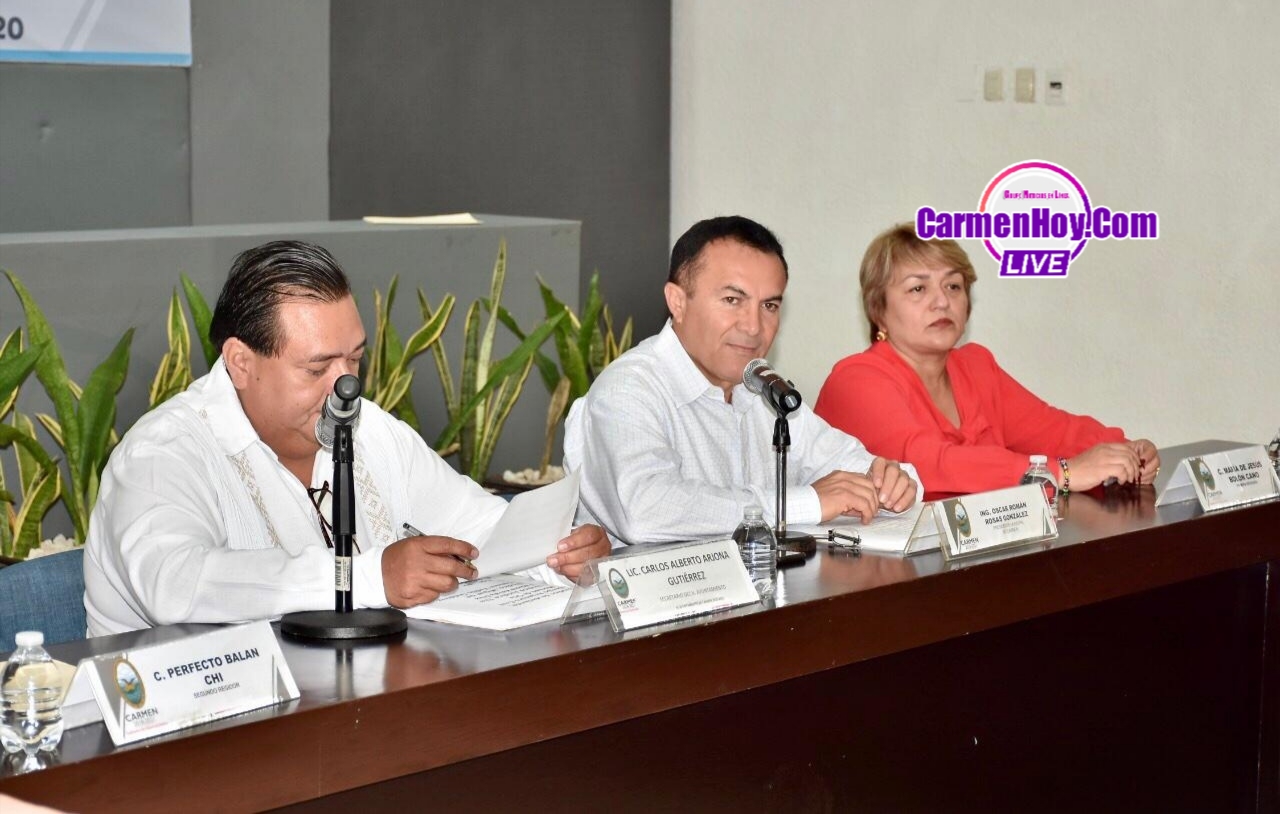 Estuvieron presentes: el Presidente Municipal de Carmen, Óscar Román Rosas González; el Secretario del Ayuntamiento, Carlos Alberto Arjona Gutiérrez; la Primera Regidora, María del Jesús Bolón Cano; el Segundo Regidor, Perfecto Balán Chi; la Tercera Regidora, Domitila Rico Camacho; el Cuarto Regidor, Luis Ramón Peralta May; la Quinta Regidora, Beatriz del Carmen Arcila Flores; el Sexto Regidor, Miguel Ángel Puch Rivera; la Séptima Regidora, Ariana del Rocío Rejón Lara; el Noveno Regidor, Haryl Kenny Sánchez Espinoza; el Décimo Regidor, Julio César Pulido Contreras; la Décima Primera Regidora, Rocío del Carmen Cárdenas Argáez; el Síndico de Hacienda, Sergio Argemiro Cruz Montes de Oca; la Síndica Jurídica, Elia Fabiola Zavala Díaz; el Síndico Administrativo, Miguel del Carmen Vadillo Gutiérrez.