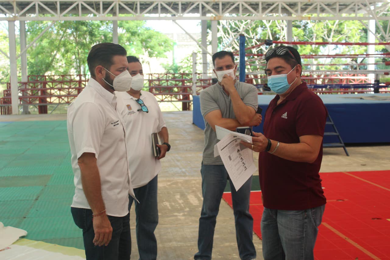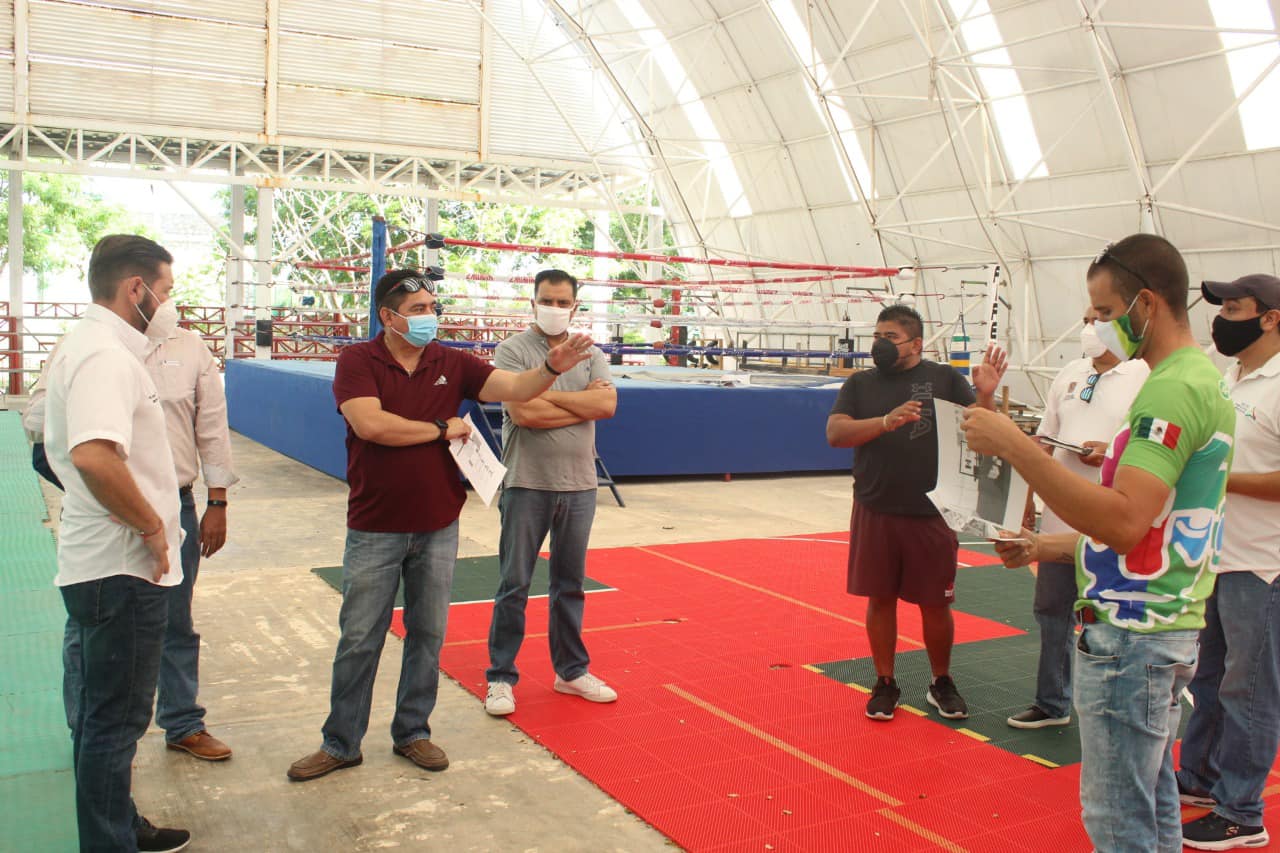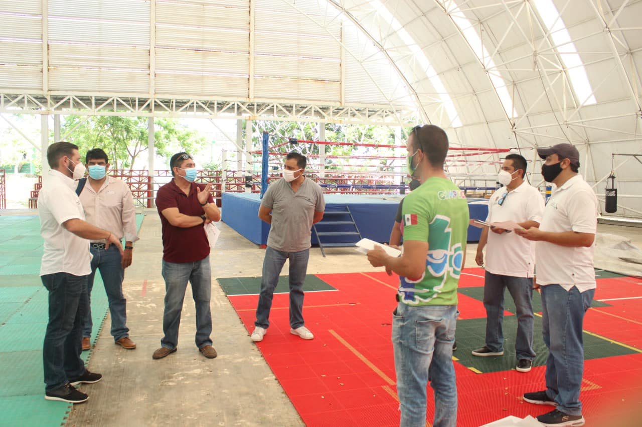 Para verificar cada detalle de la participación de los pesistas campechanos en el Mundial Virtual de la especialidad, el Director General del Instituto del Deporte de Campeche (INDECAM) Jorge Carlos Hurtado Montero, se reunió con personal administrativo y de campo durante el montaje del escenario donde los atletas realizarán la competencia internacional.