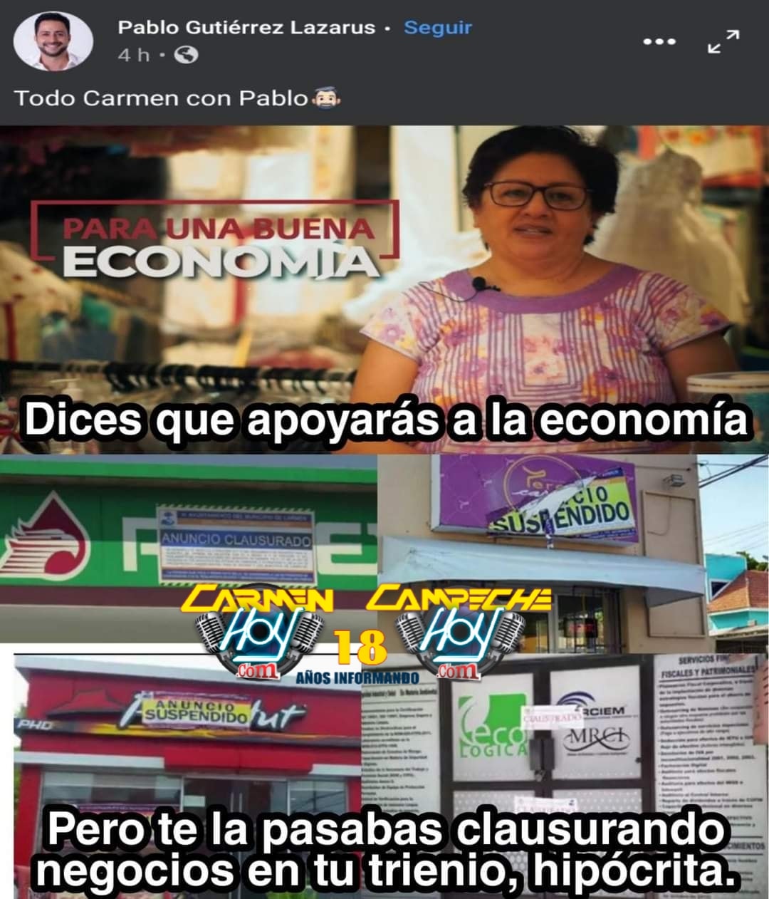 Los comerciantes no pierden la memoria, cuantos negocios tuvieron que cerrar en la administración de Pablo Gutiérrez Lazarus por cobrar los miles de pesos y ahora dice que apoyará la economía
