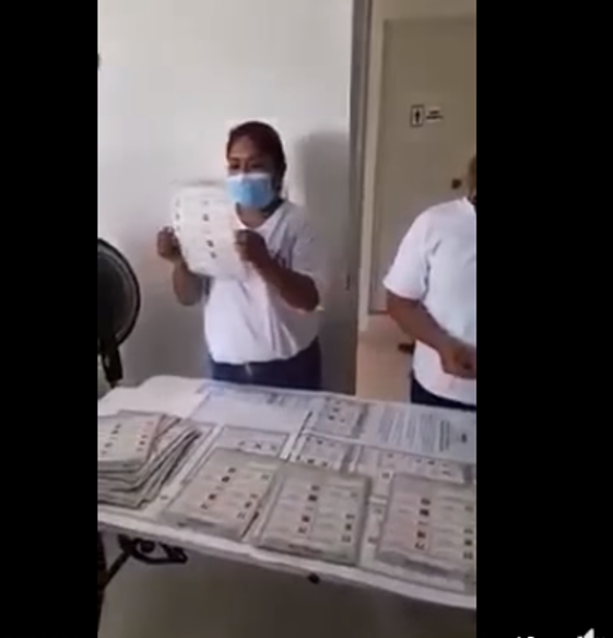 El intento de fraude electoral fue grabado y exhibido a través de un video que ya circula en redes sociales, donde se puede apreciar cómo están tratando de ponerle más votos a la corrupta y mentirosa candidata de la 4T.