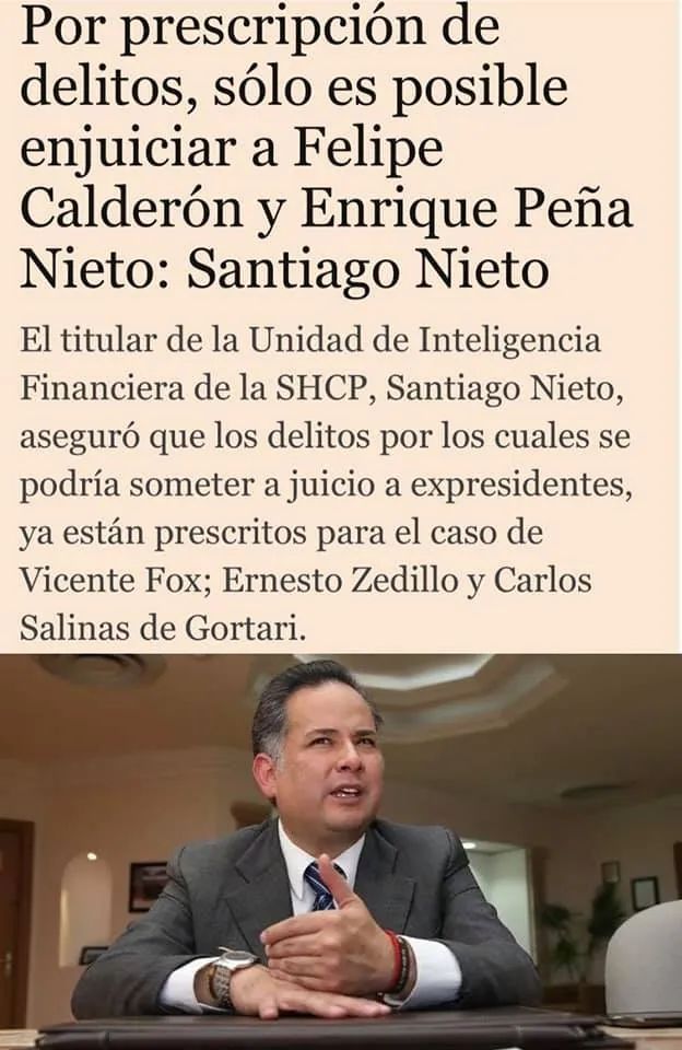 Si van a meter a la Cárcel a los Ex-Presidentes adelante, sin embargo, nos interesa que metan a la cárcel a personajes que en la actualidad están realizando actos de corrupción como: Pío Obrador con su famoso video o Felipa Obrador con sus millonarios contratos con Pemex, o la prima Manuela Obrador que se reeligió haciéndose pasar por Indígena, Irma Eréndira Sandoval la que acaban de correr de la Secretaria de la Función Pública por haberle detectado compras en sobre precio de Pruebas de Covid por 465 pesos cada prueba cuando en el mercado normal cuestan 124 pesos, esto multiplicado por miles de vacunas, son millones de pesos que donde quedo estimado lector? El hijo de Barlett según lo castigaron por vender a sobre precio los ventiladores que ni eran nuevos sino usados y que según fue castigado, hoy día sigue vendiendo millones de pesos a este mismo gobierno federal. Corrupción es cosa del pasado? Claro que no, hoy día hay más corrupción solo que en las Mañaneras el Presidente todo los días trata de encubrirlo echándole la culpa hasta la clase media, pero a poco el le dijo a sus hijos que no vivan en EEUU? que no viajen a Aspen a Esquiar? que no tengan carros Ferraris, Porches? que no usen Aviones particulares y viajen por todo el mundo? a poco en 2 años y medio ya son millonarios después de que no sabían a donde iban a trabajar ni sabían a que se iban a dedicar, si, ya vimos a que se dedican hoy día los hijos del Presidente.
