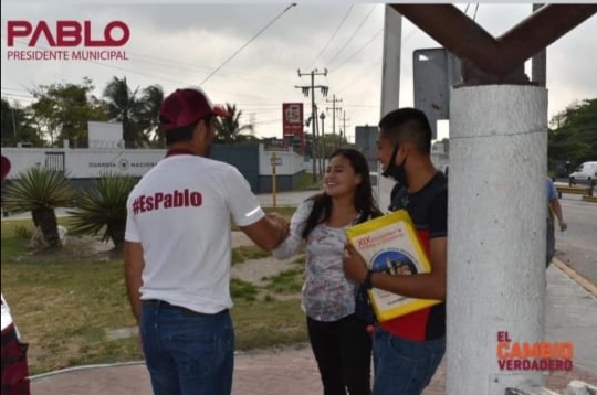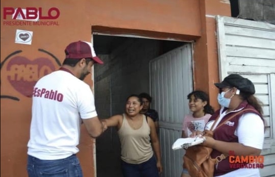 Casa por casa y ciudadano a ciudadano Pablo Gutiérrez Lazarus esparce las posibilidades de contagiar a niños, adultos y adultos mayores ya que no respeta las medidas básicas para evitar contagios, como es el uso correcto del cubrebocas.