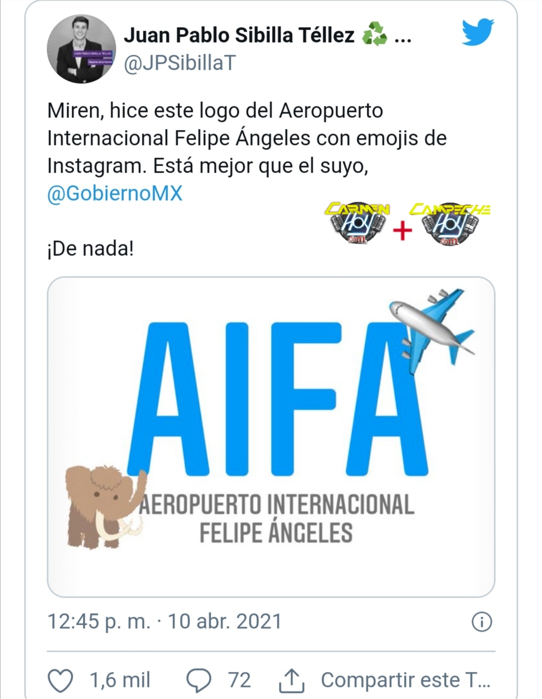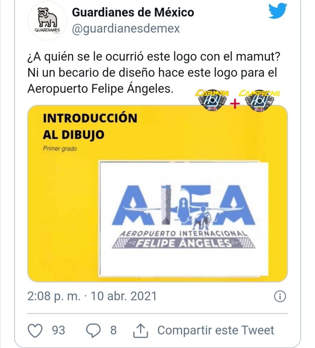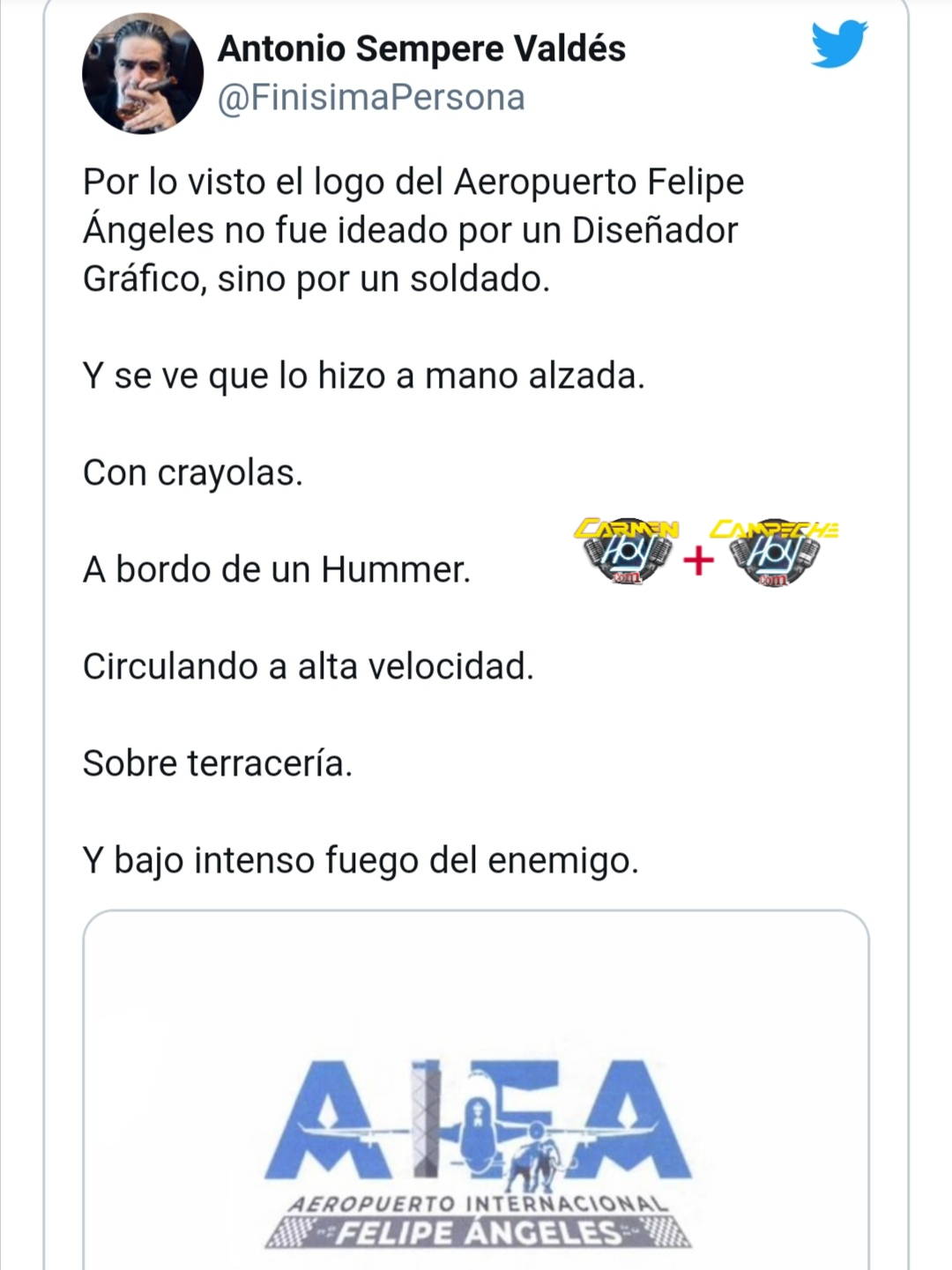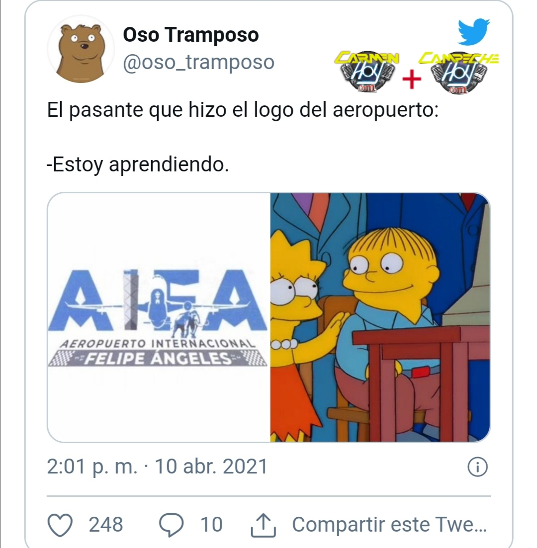 Usuarios de redes sociales difundieron el supuesto logotipo del Aeropuerto Internacional Felipe Ángeles, proyecto del Presidente Andrés Manuel López Obrador en el complejo de Santa Lucía, en Zumpango, Estado de México, y se burlaron de él con memes.