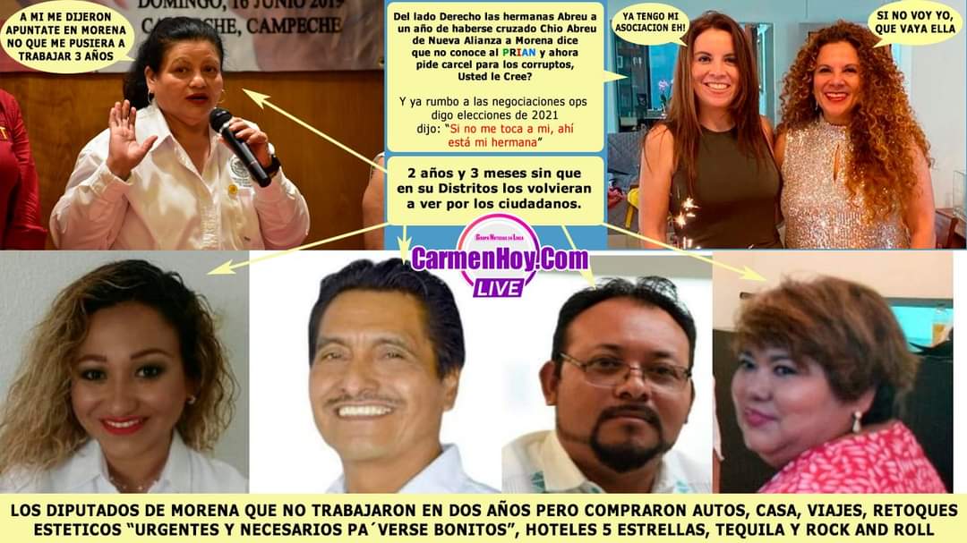 1. Seis diputados de MORENA fueron elegidos por votación y a los cuales se les vio desaparecidos durante los primeros dos años de legislación, ahora con la cercanía de las elecciones, estas figuras empiezan a salir de repente demostrando un fugaz amor por servir al prójimo, a ese potencial votante a quien quieren convencer de que son la mejor opción sin haber trabajado.