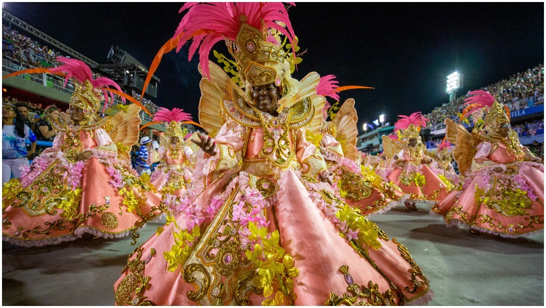 Casi todas las escuelas de samba de Río están estrechamente relacionadas con las comunidades de clase trabajadora. Sus procesiones incluyen elaborados carros alegóricos acompañados por tamborileros y bailarines disfrazados que cantan a todo pulmón para impresionar a un panel de jueces. Decenas de miles de espectadores abarrotan las gradas de la arena, conocida como Sambódromo, mientras que decenas de millones observan el espectáculo en la televisión.