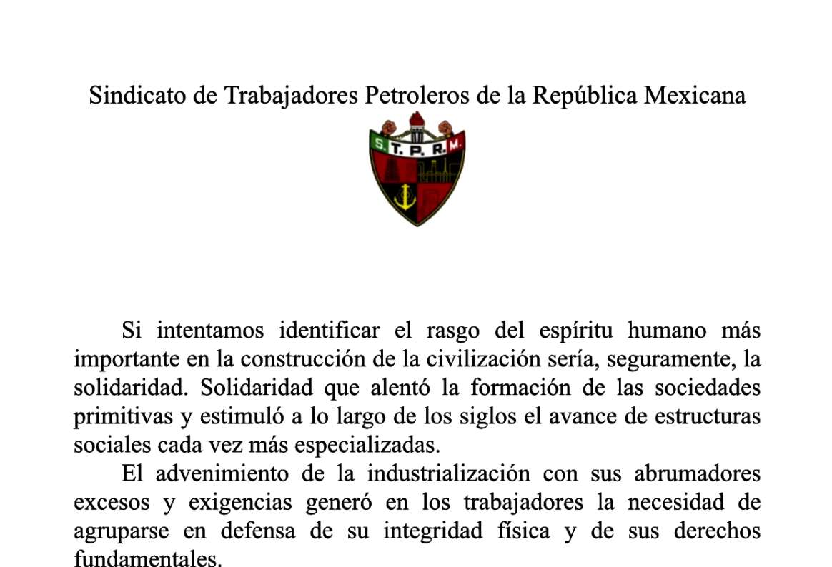 En el documento señaló que ha visto pasar múltiples formas y modelos en la administración de Pemex, pero el sindicato petrolero ha mantenido la actitud institucional de esfuerzo y trabajo en respaldo del fortalecimiento y desarrollo de la empresa.